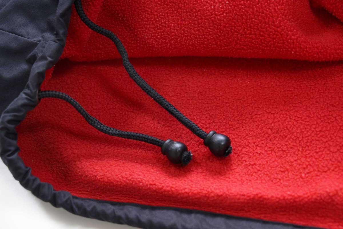 フリースライナー、前立てトップにベルクロあり、裾にドローコードあり