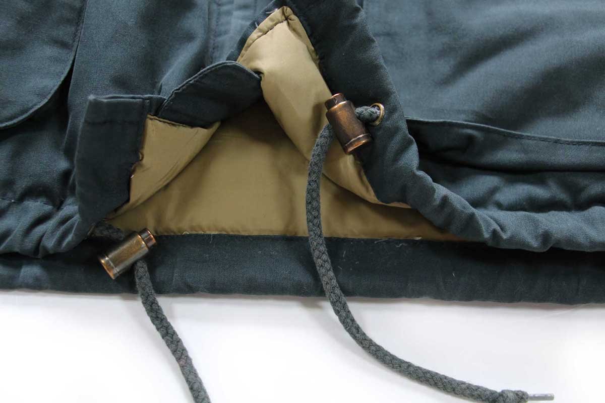 黒タグ、フロントYKKジップ、裾にドローコードあり、左内ポケットあり、袖口内にリブあり