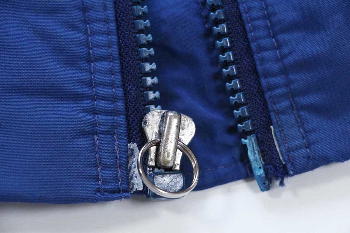 コンディション:着用感があり、背中上部に若干の色落ち、袖先に若干のうっすら汚れ、右ヒジ付近に1つの細かい小キズ、フロントジップのスライダー持ち手が欠損してリングに交換されています。致命的なダメージや酷い汚れはなく、古着慣れされている方なら問題なく着用いただける程度です。