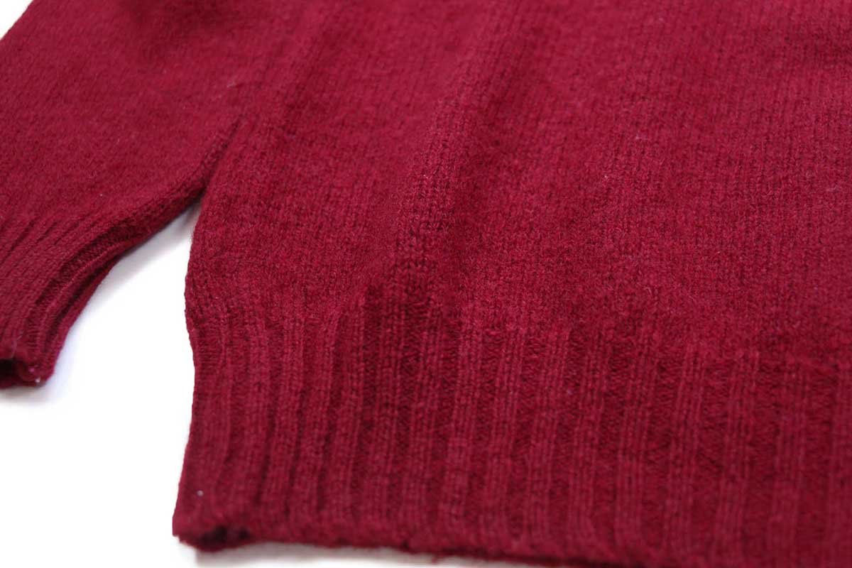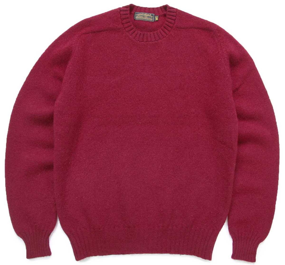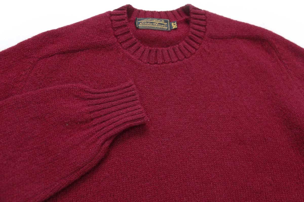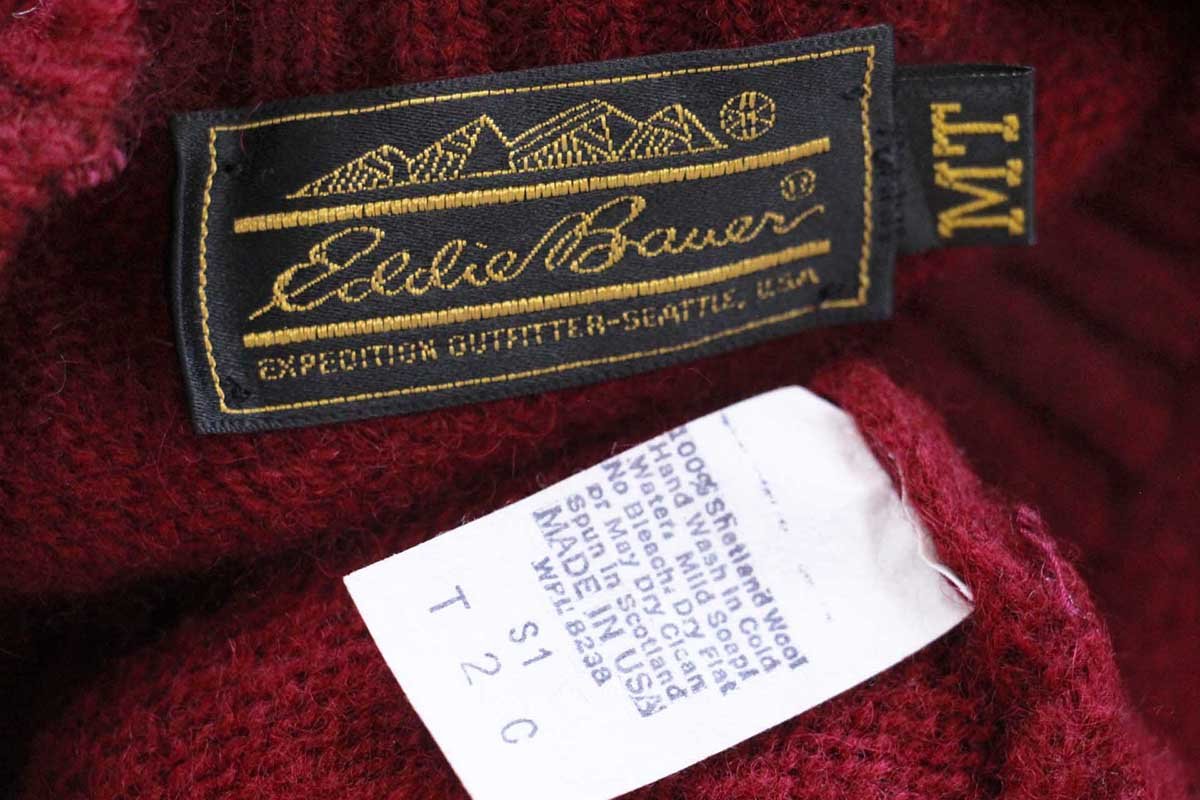 80s USA製 EddieBauerエディーバウアー 無地 サドルショルダー シェットランド ウールニット セーター ワインレッド MT