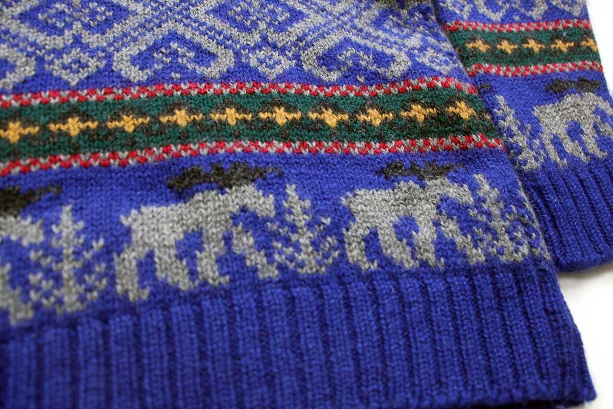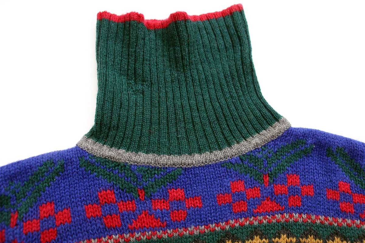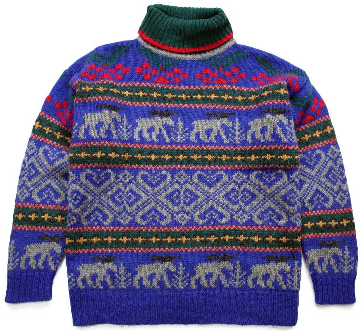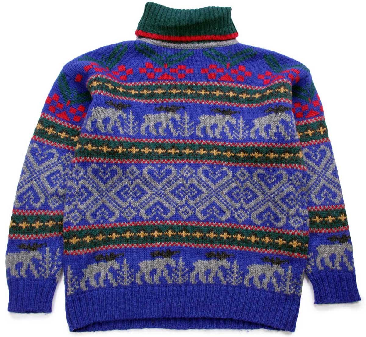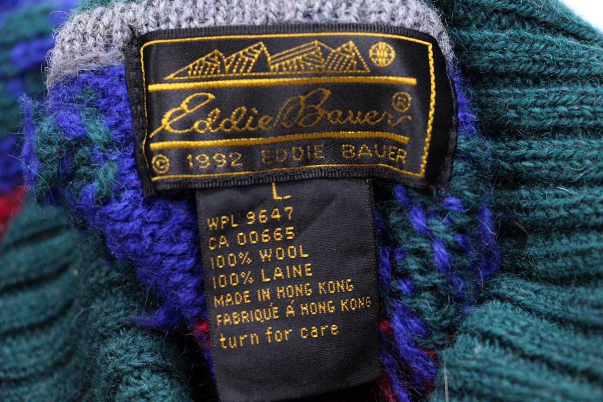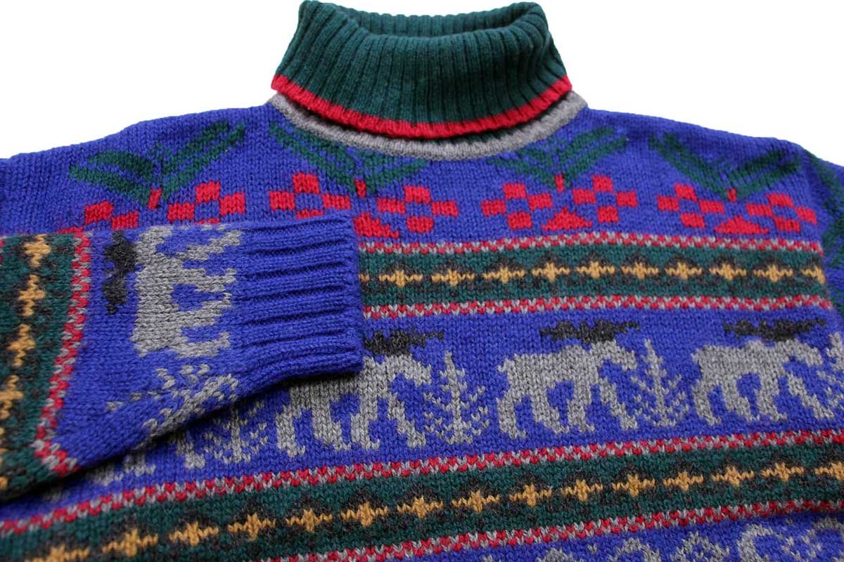 90s EddieBauerエディーバウアー ムース柄 ノルディック柄 タートルネック ウールニット セーター L