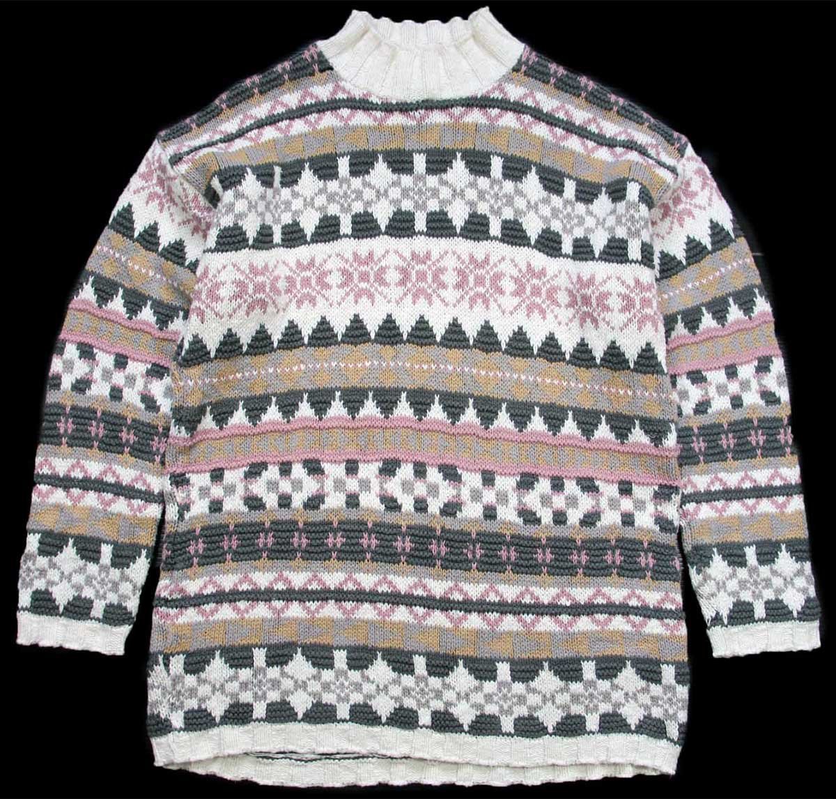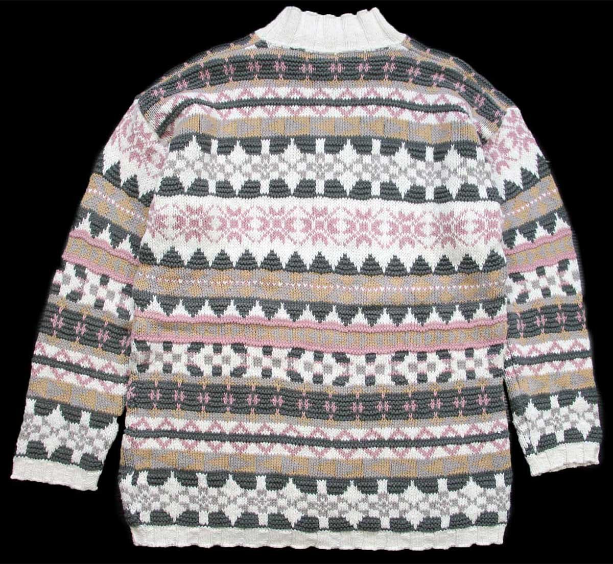 80s USA製 L.L.Bean 雪柄 ノルディック柄 モックネック コットンニット セーター L