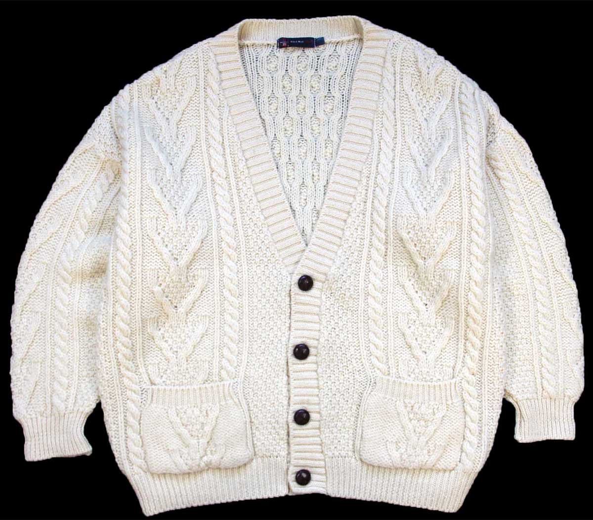 British Wool Naturally ケーブル編み ウールニット カーディガン ナチュラル L★フィッシャーマン