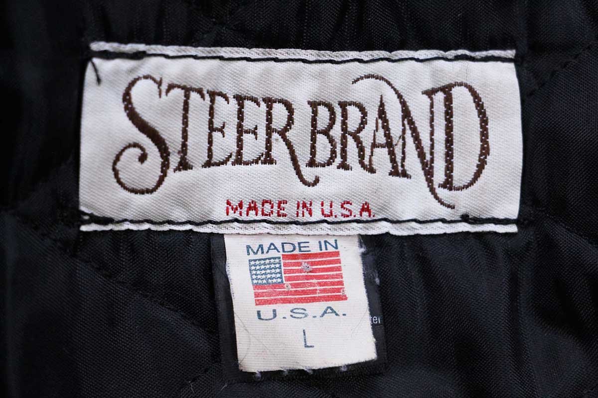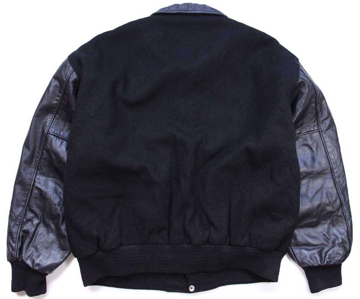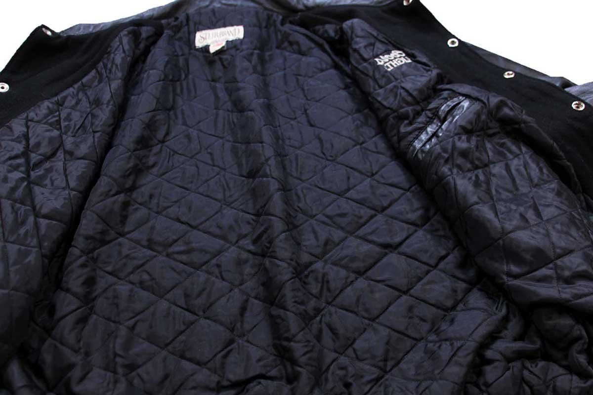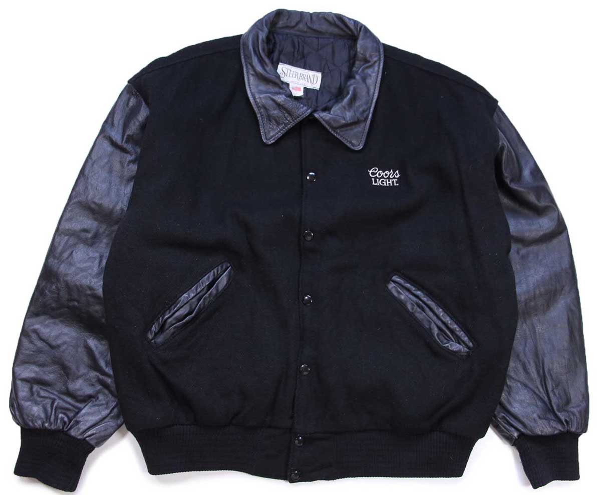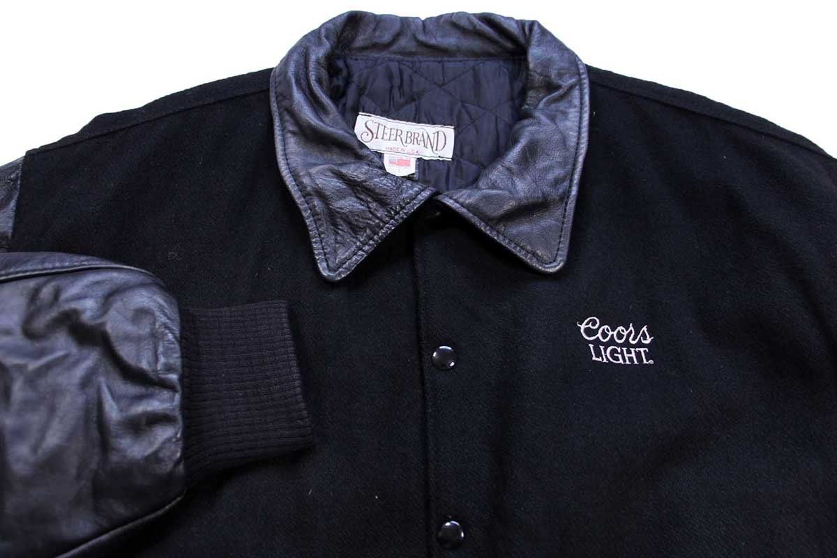 90s USA製 Coors LIGHT ロゴ刺繍 キルティングライナー メルトン ウール 袖革スタジャン 黒 L