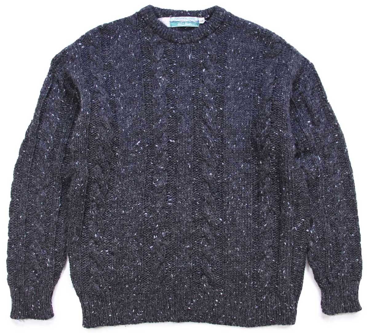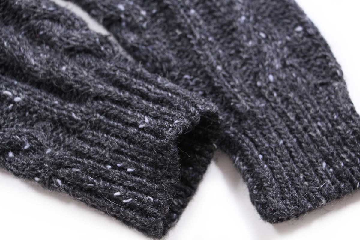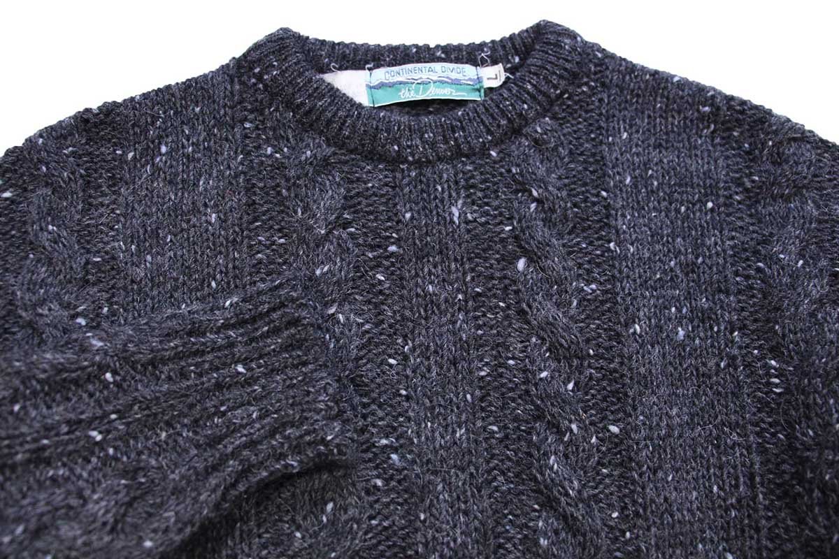 英国製 CONTINENTAL DIVIDE ケーブル編み ネップ入り ウールニット セーター チャコールグレー L★フィッシャーマン