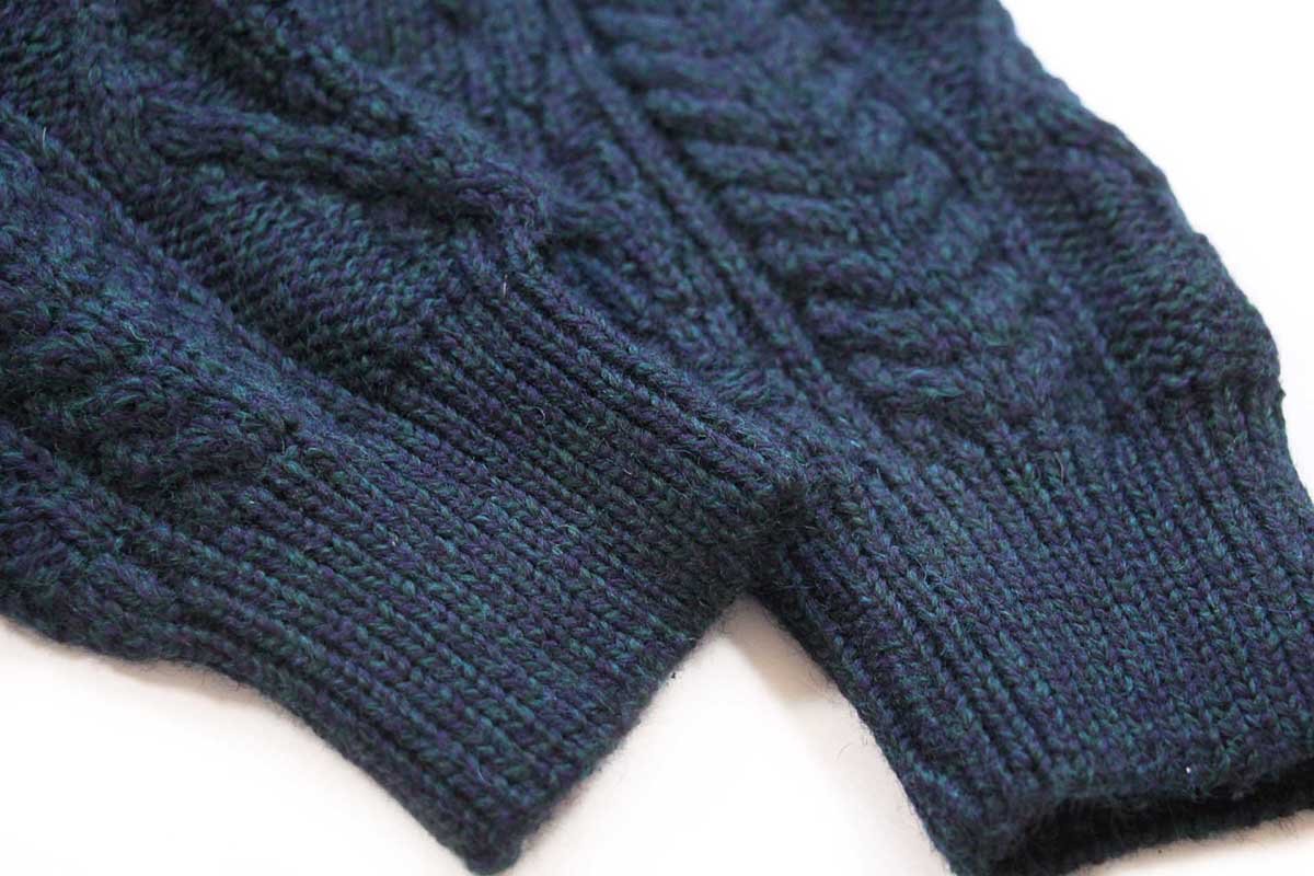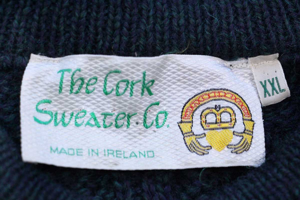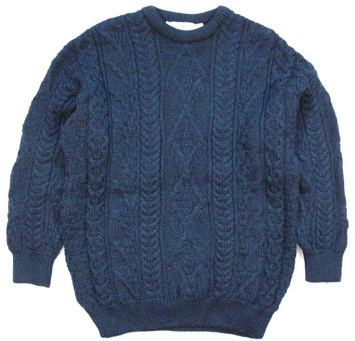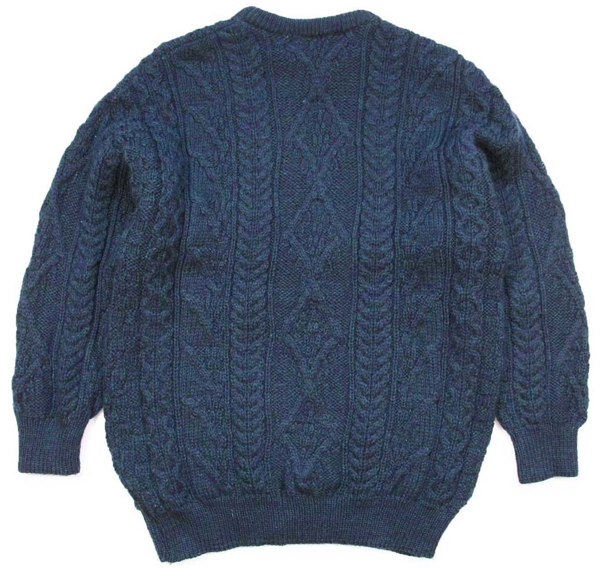 アイルランド製 The Cork Sweater Co. ケーブル編み ウールニット セーター 緑×紺 ミックス XXL★特大 フィッシャーマン