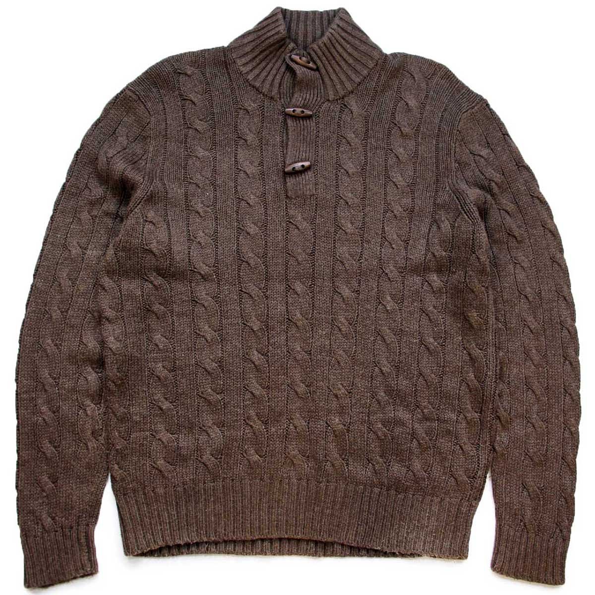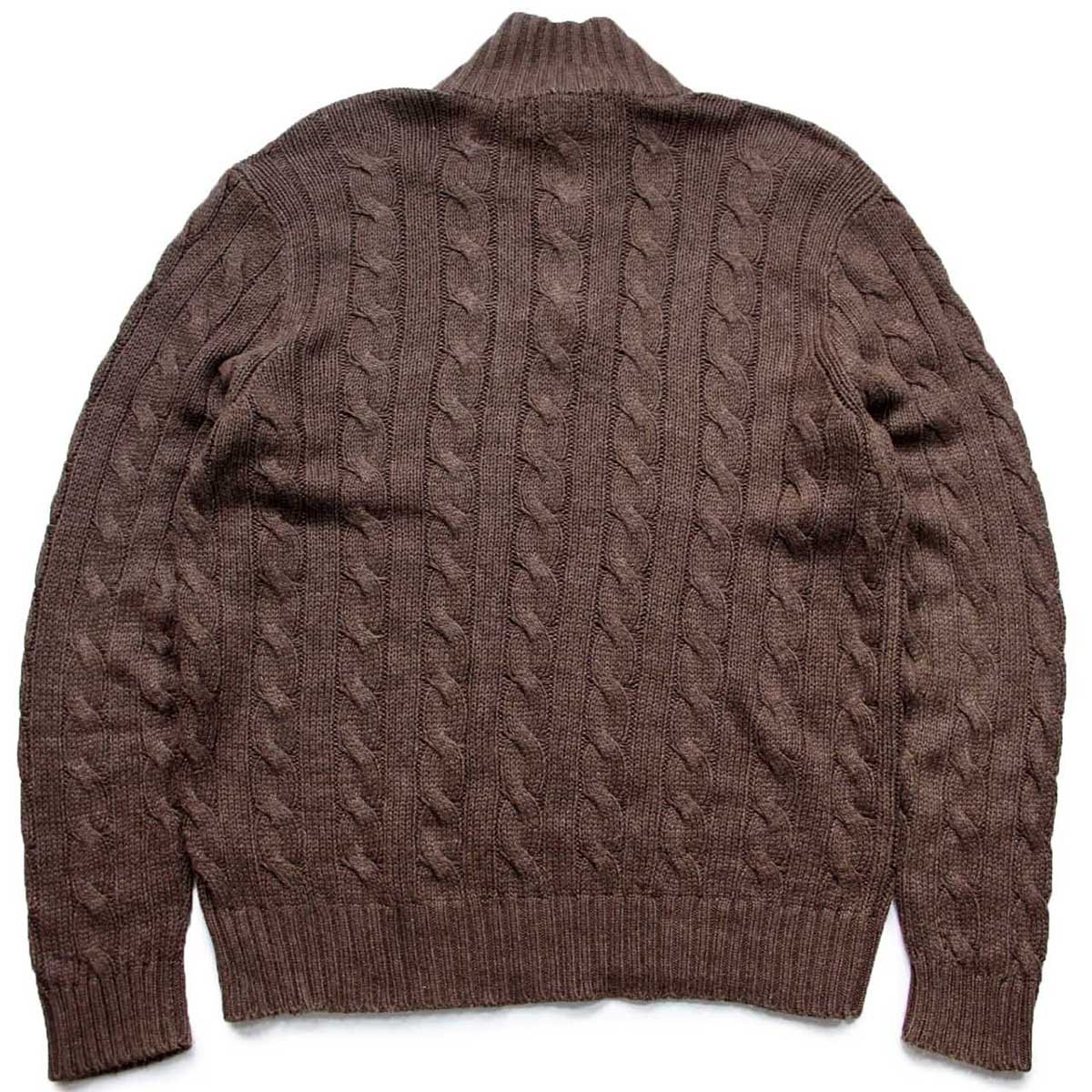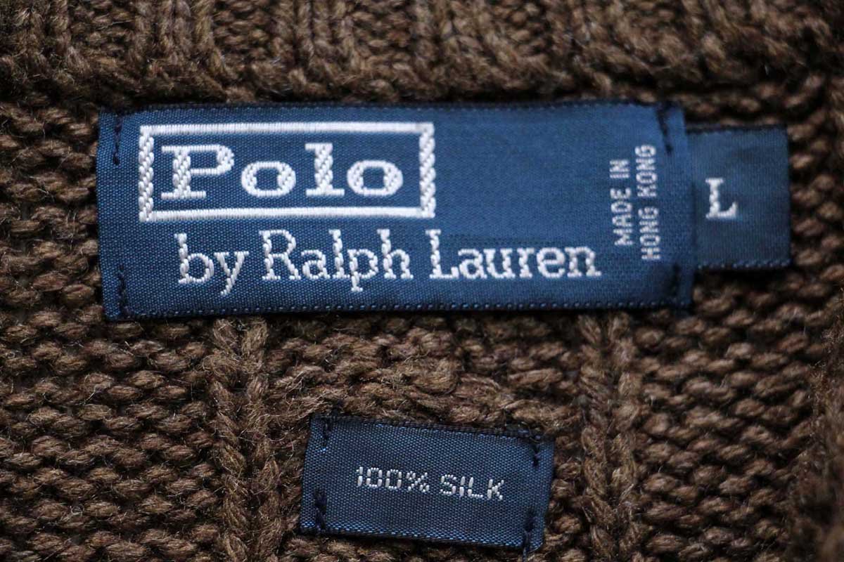 90s ポロ ラルフローレン ハイネック ケーブル編み シルクニット セーター ブラウン L