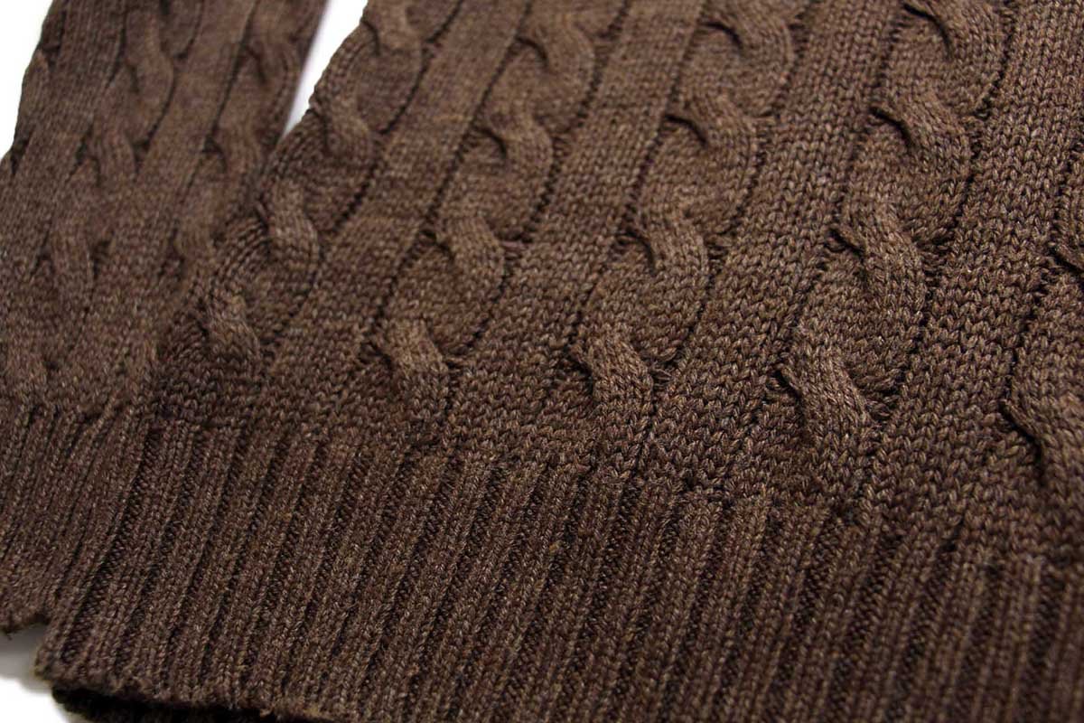 ケーブル編みが施された、滑らかで柔らかいニットです。