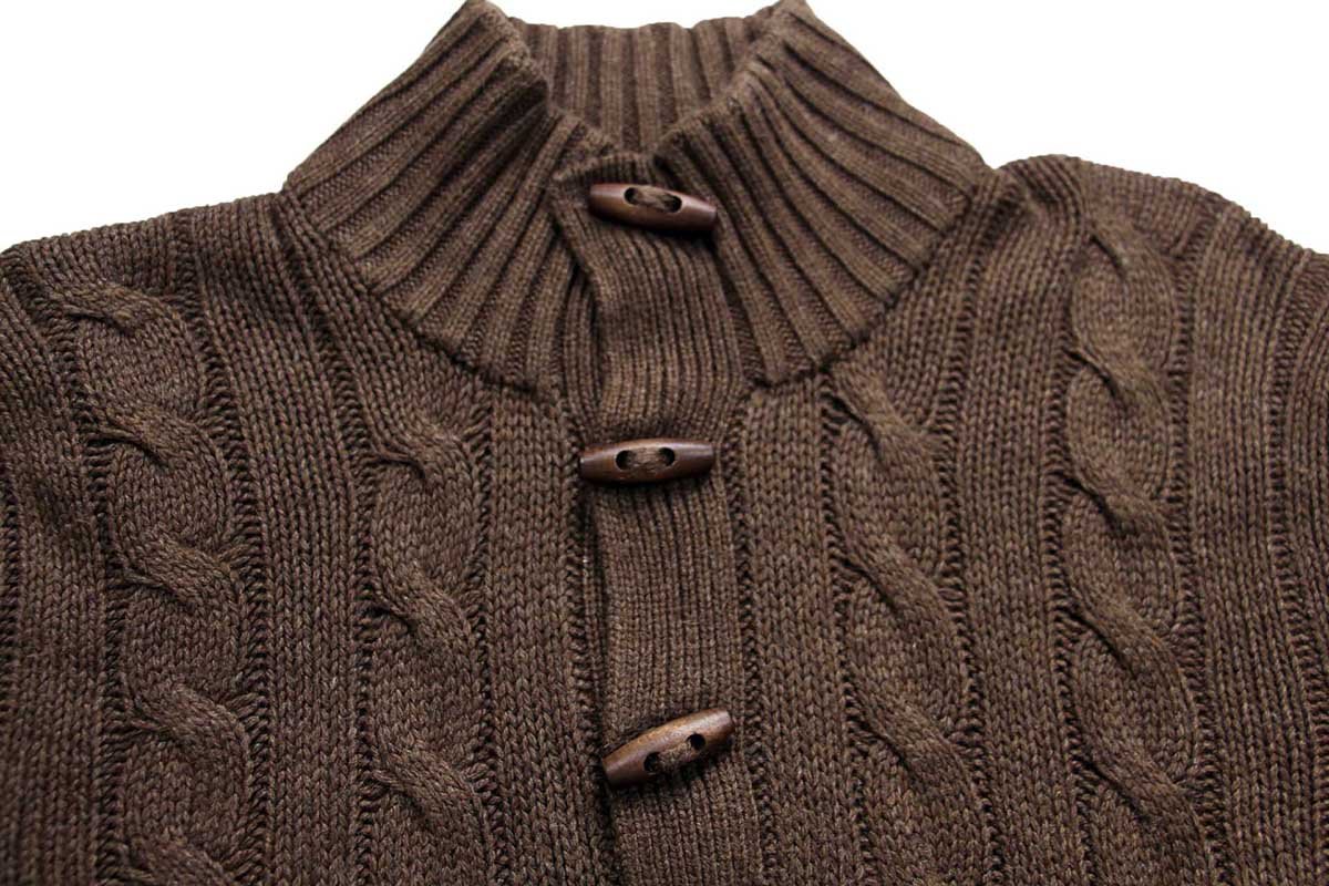 ハイネック、トグルボタン留め