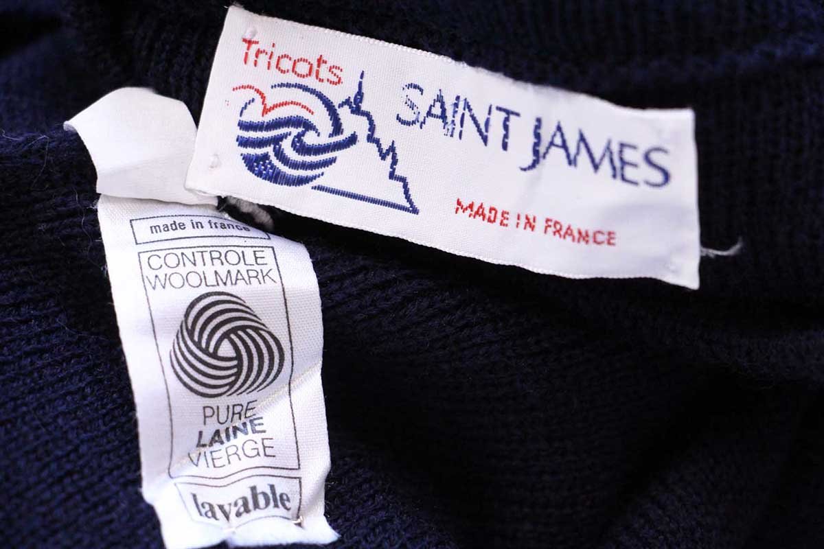 70s フランス製 SAINT JAMES セントジェームス ロングホーン刺繍 ウールニット マリンセーター 濃紺 XL
