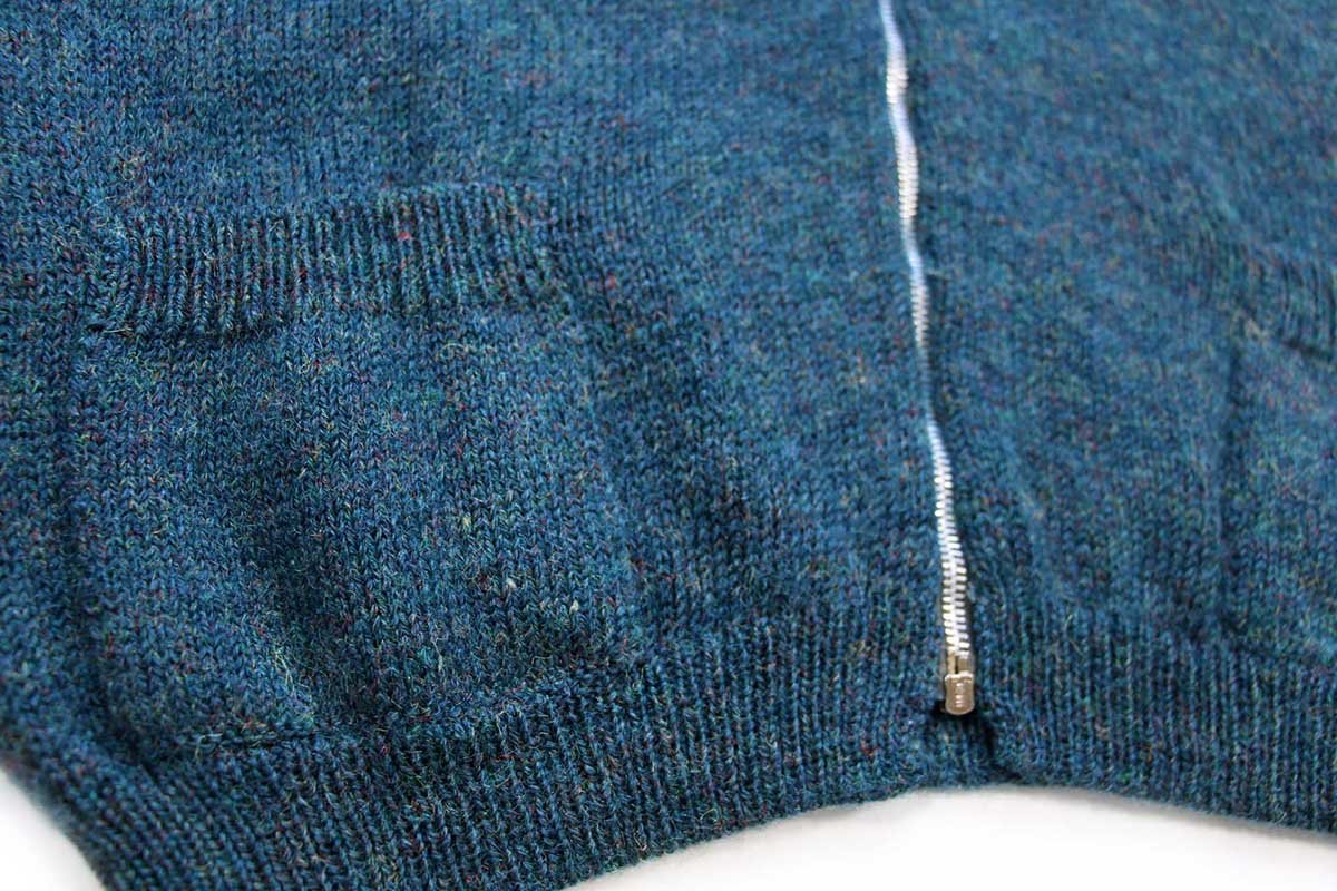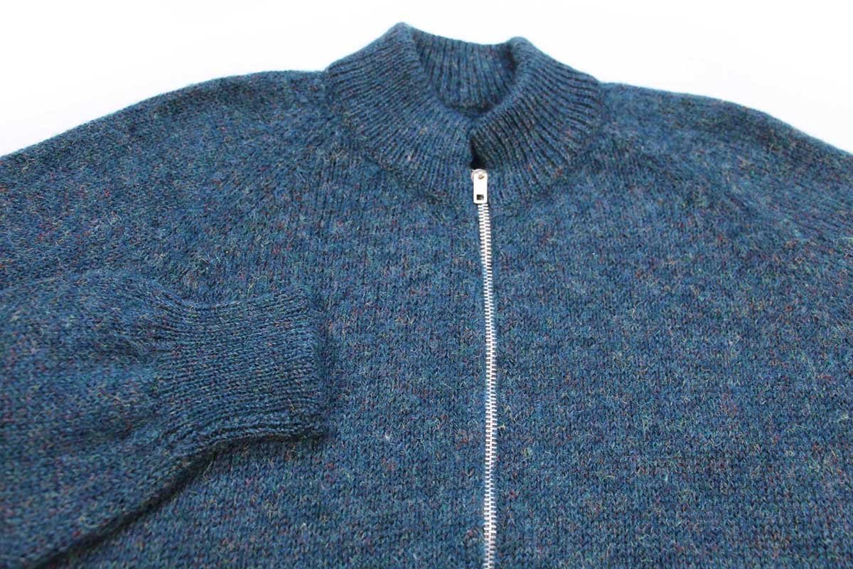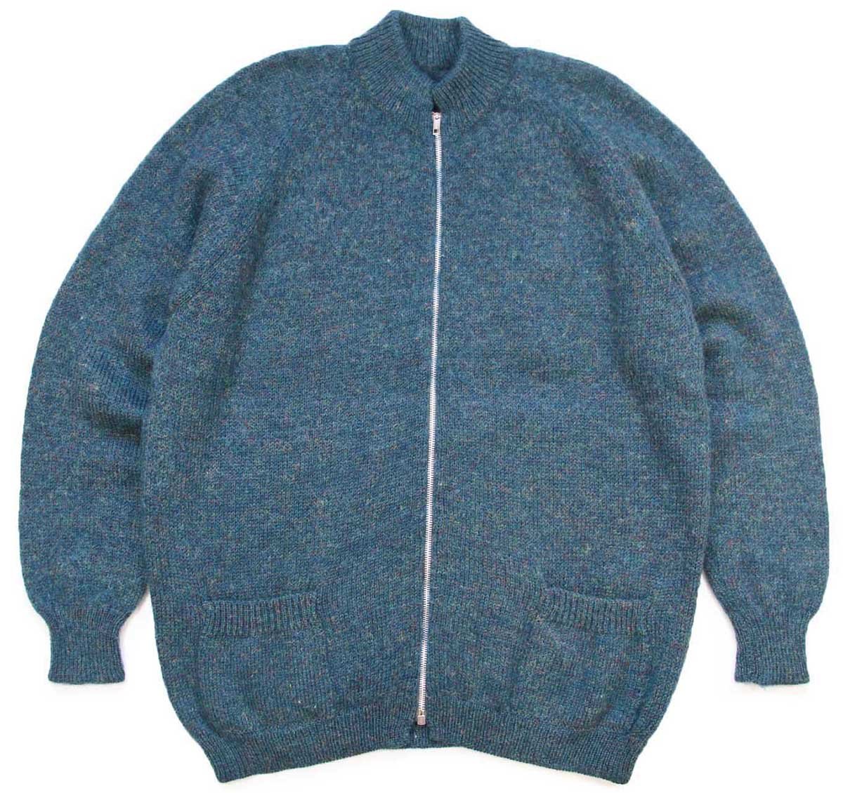 ビンテージ UNKNOWN 無地 ウール ドライバーズニット フルジップ セーター 青緑 ミックス