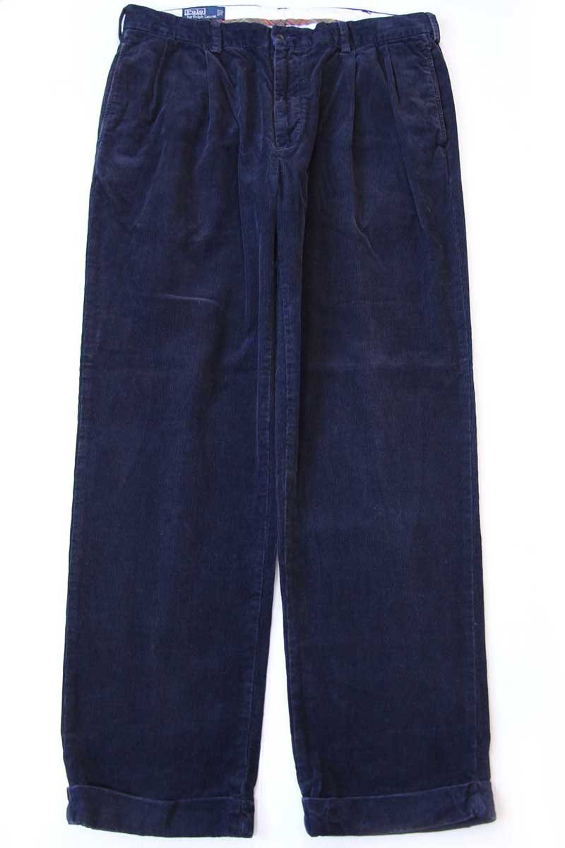 90s ポロ ラルフローレン HAMMOND PANT ツータック コットン コーデュロイパンツ 紺 W38 L32