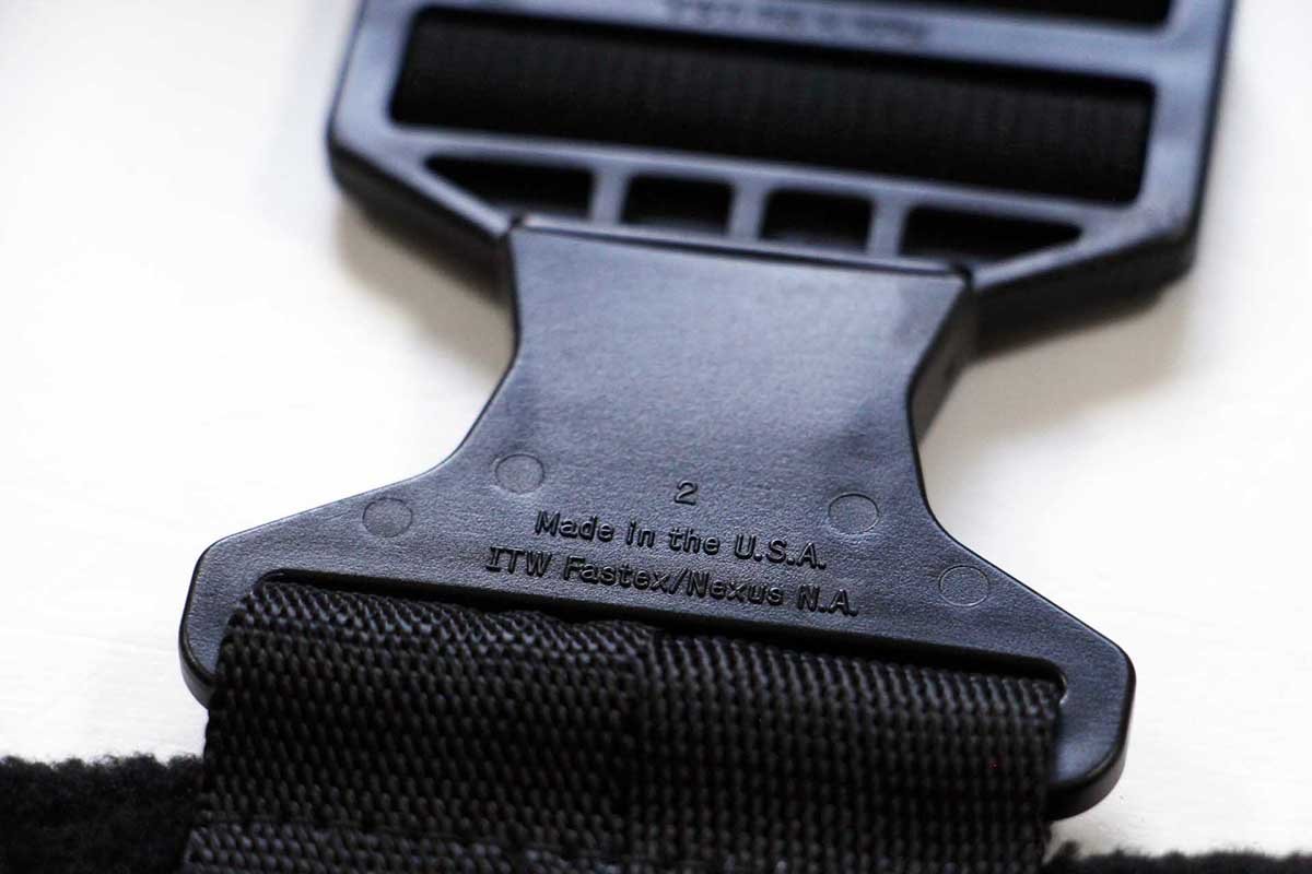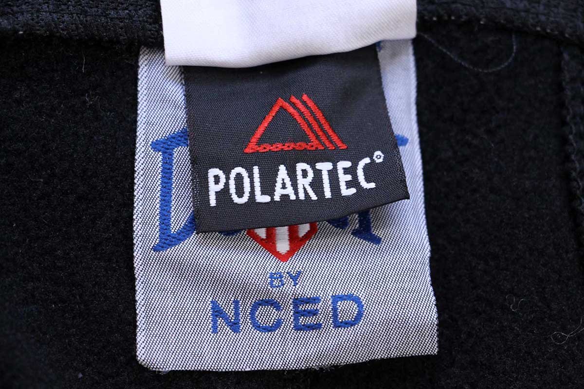 ストラップ留め具にMADE IN THE USA表記あり、POLARTECフリースが使用されています。