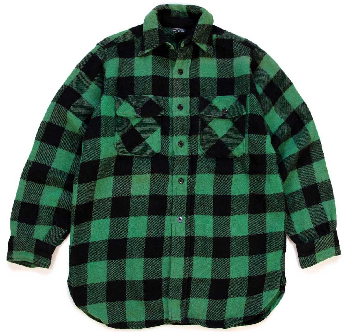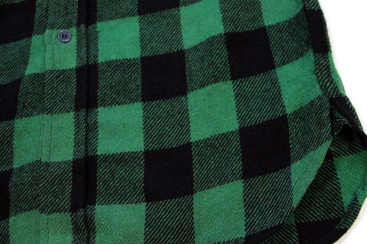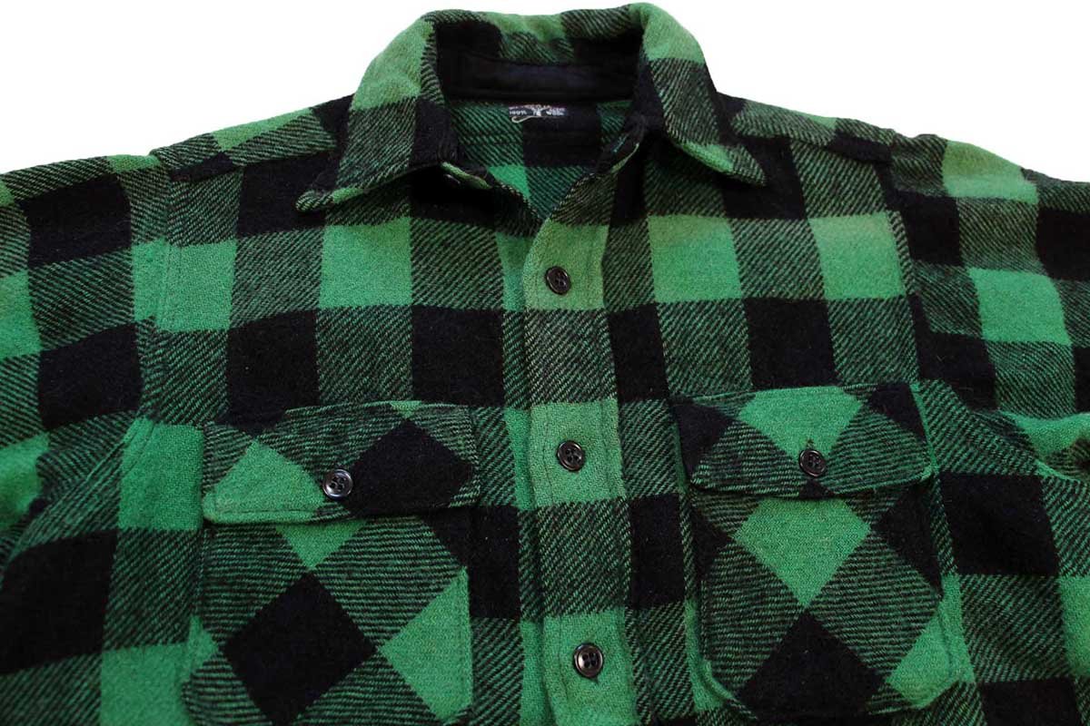 60s WINTER KING バッファローチェック マチ付き ウールシャツ 緑×黒