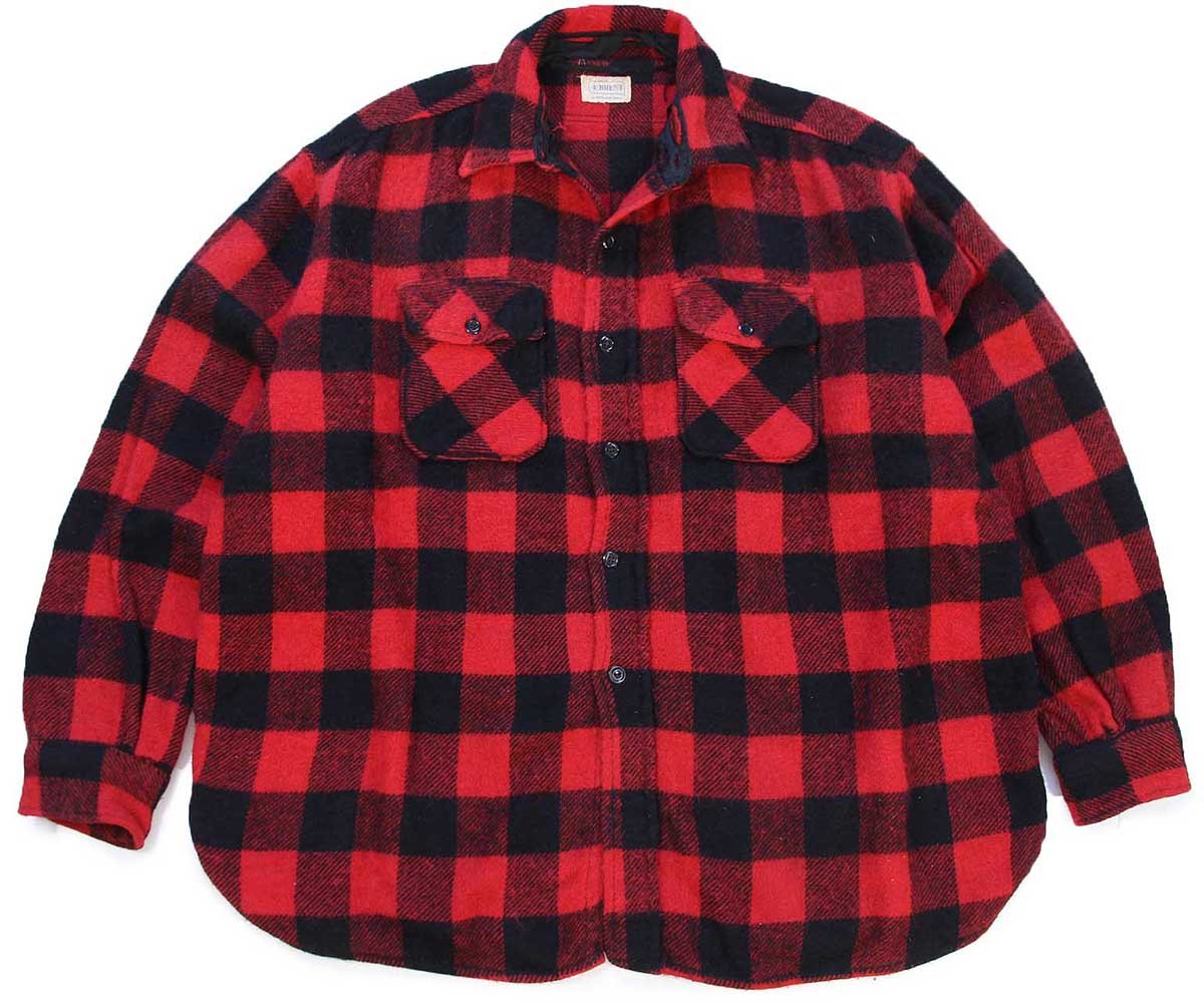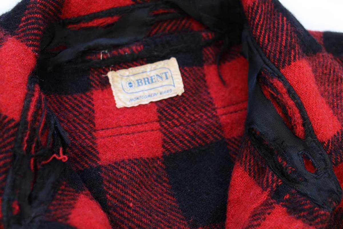 60s MONTGOMERY WARD BRENT マチ付き バッファローチェック ウールシャツ 赤×黒