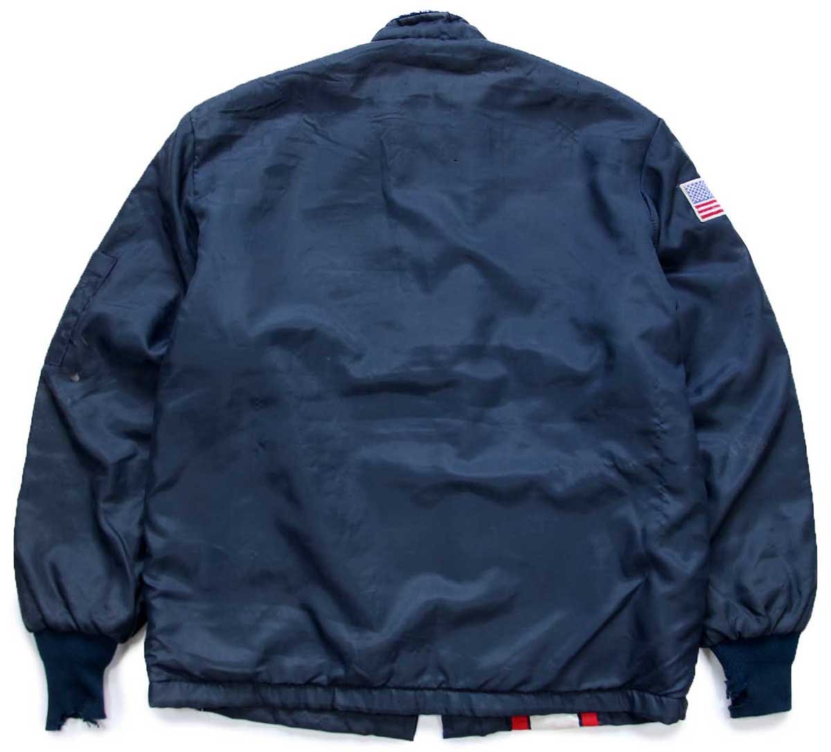70s American Airlines ボーイング767 飛行機 パッチ付き スタンドカラー ボアライナー ナイロンジャケット ボロ 紺