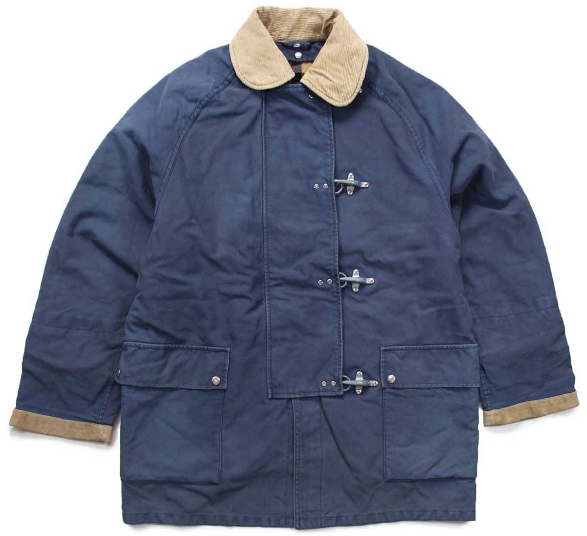 イタリア製 Fay チンスト&タータンチェック ウールライナー付き コットン キャンバス ファイヤーマンコート 薄紺 フェード L