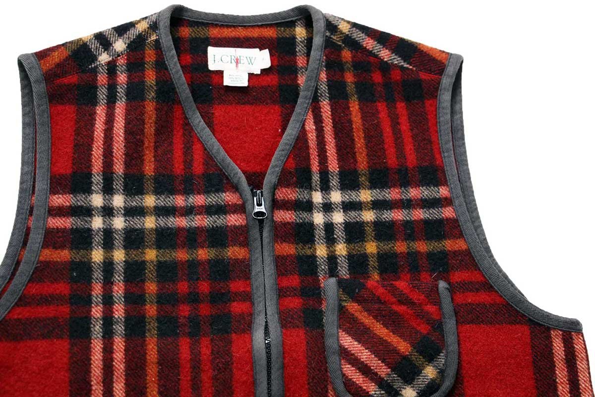 90s J.CREW パチポケ タータンチェック ウールベスト S
