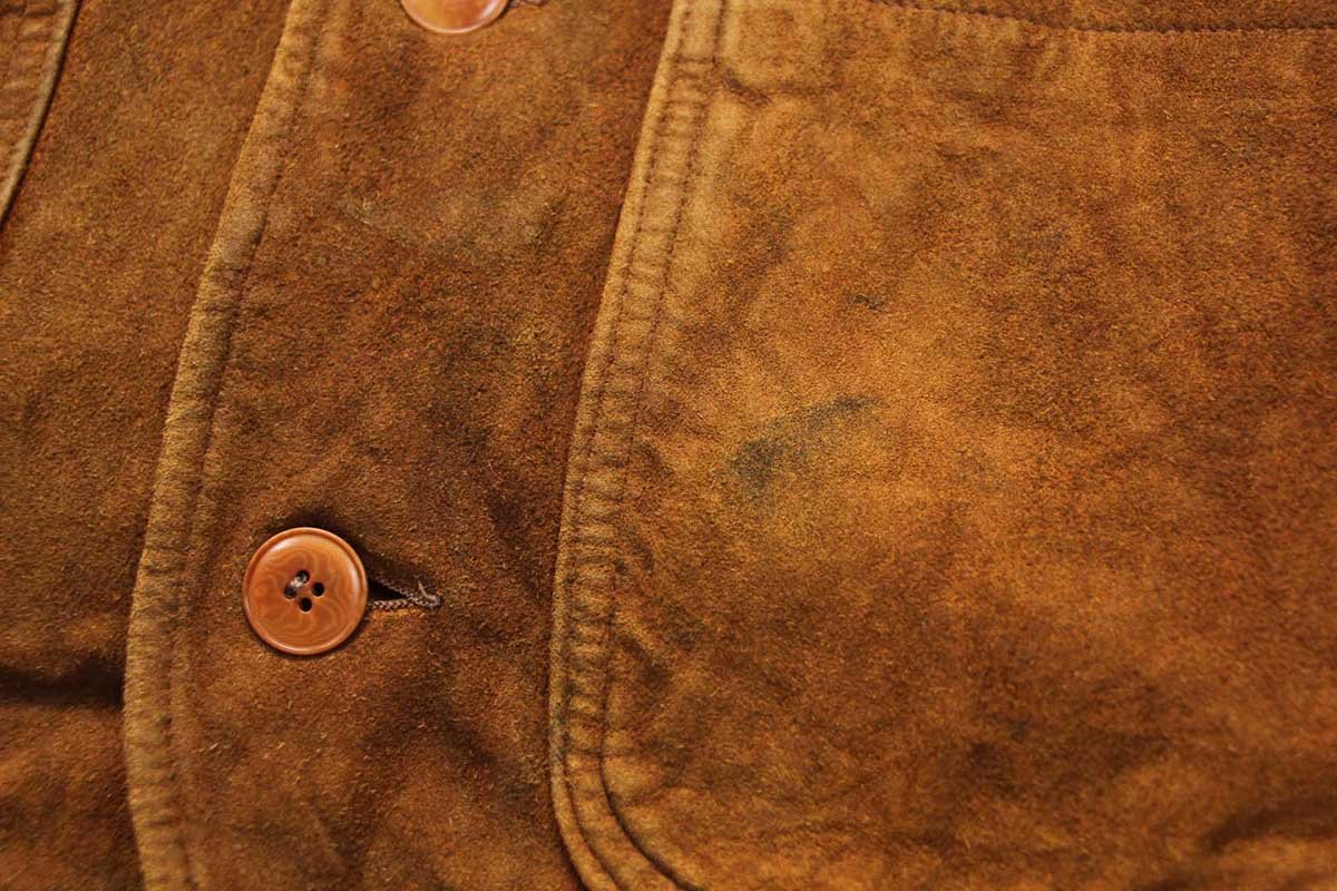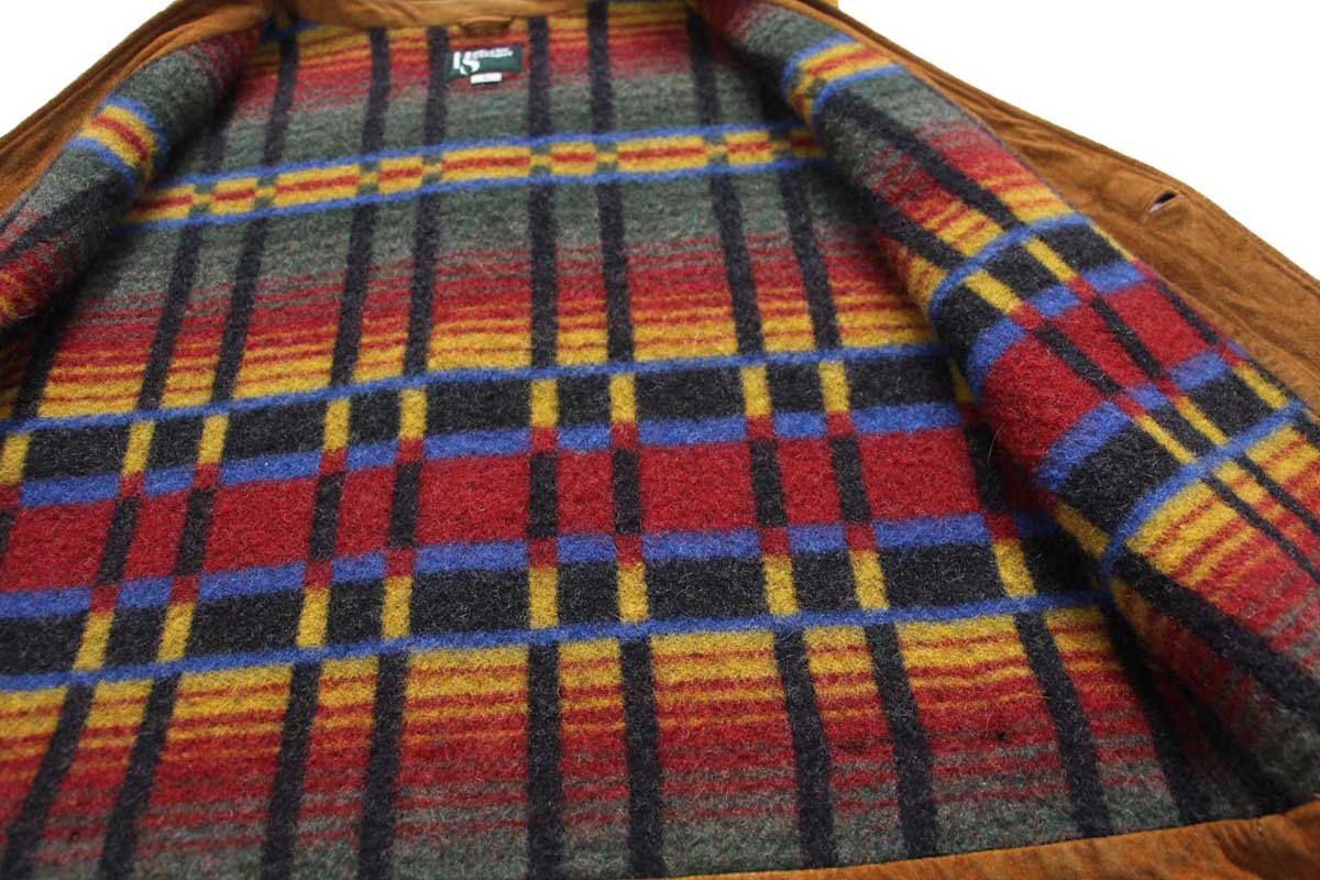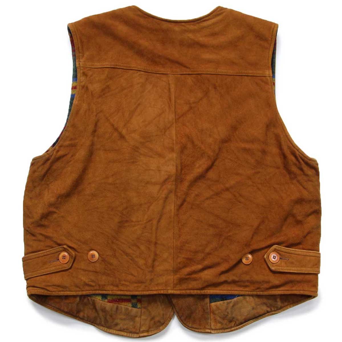 90s USA製 Hammacher Schlemmer ウール ブランケットライナー スエード レザーベスト 茶 L