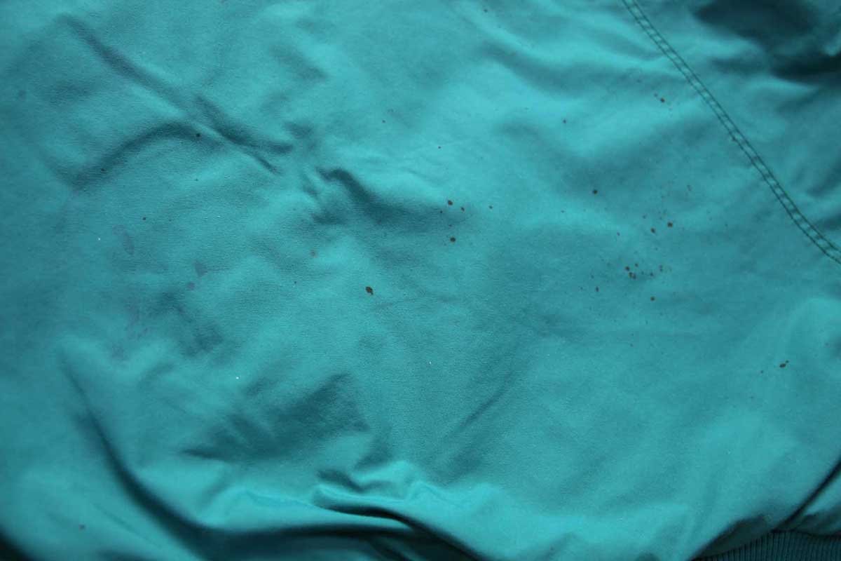 コンディション:着用感があり、所々に細かい汚れと色汚れ、ジップレールに歯飛びがありスライダーが欠損しています。裏地の腹部左に少しの焦げ跡があります。
