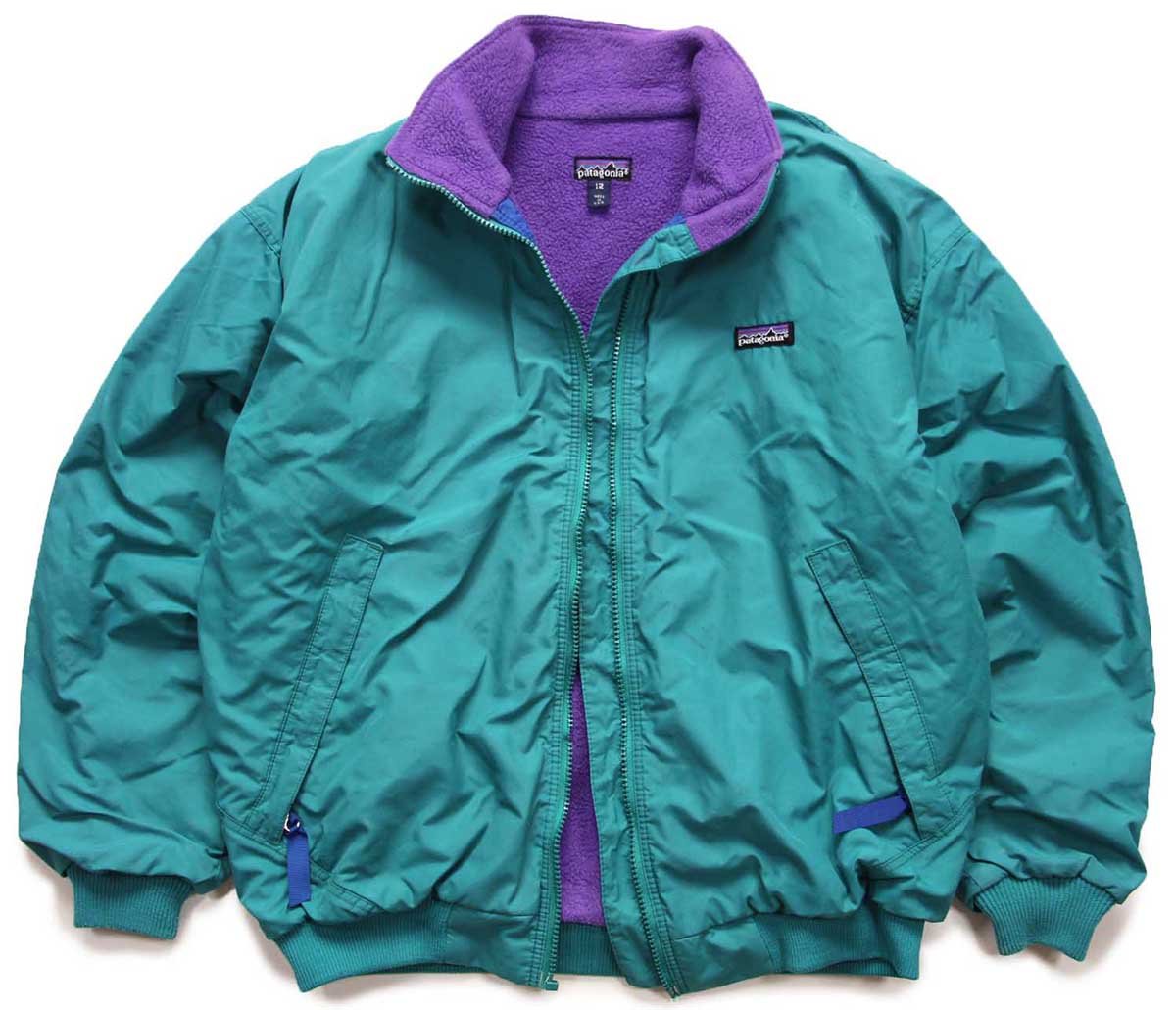 訳あり★80s USA製 patagoniaパタゴニア シェルドシンチラ フリースライナー ナイロンジャケット エメラルドグリーン 12