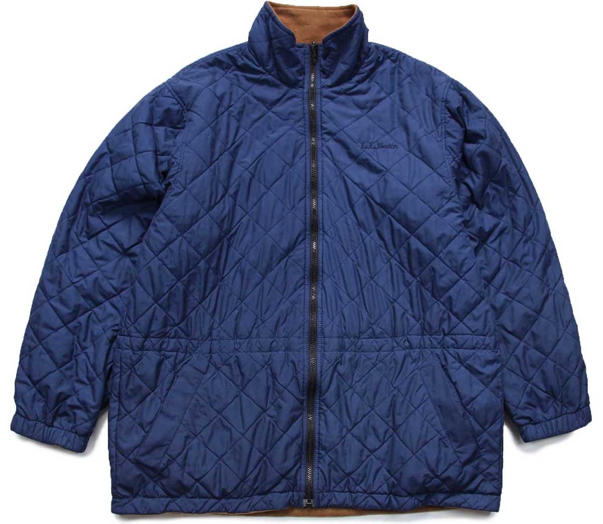 00s L.L.Bean ロゴ刺繍 リバーシブル キルティング×フリースジャケット 茶×紺 L-R