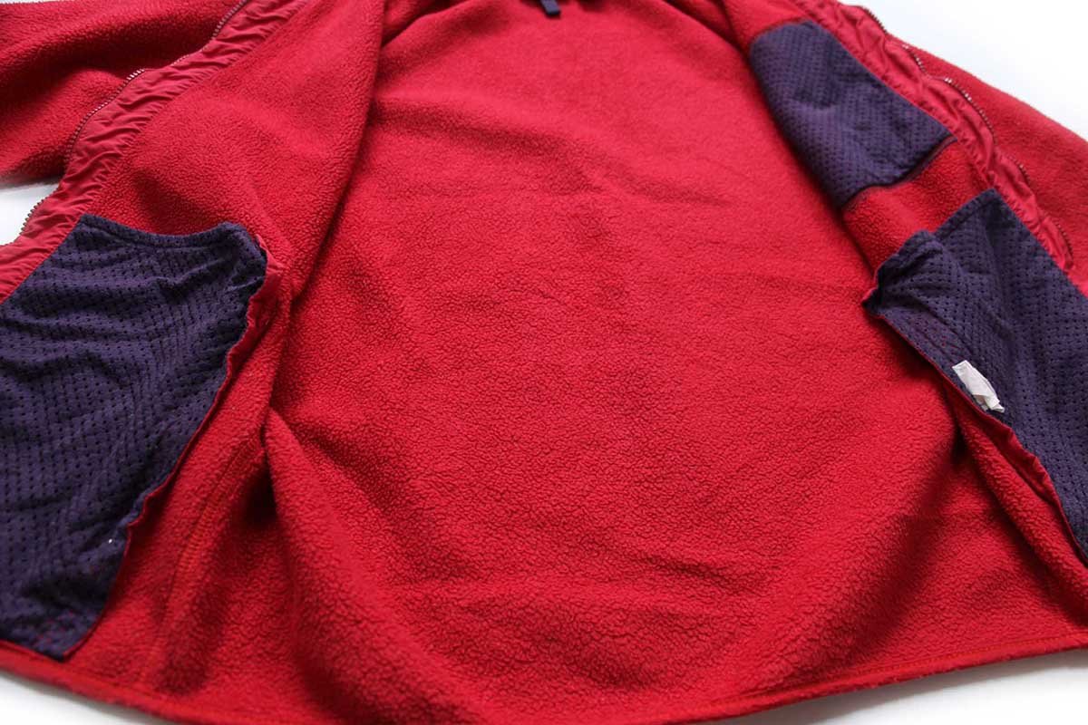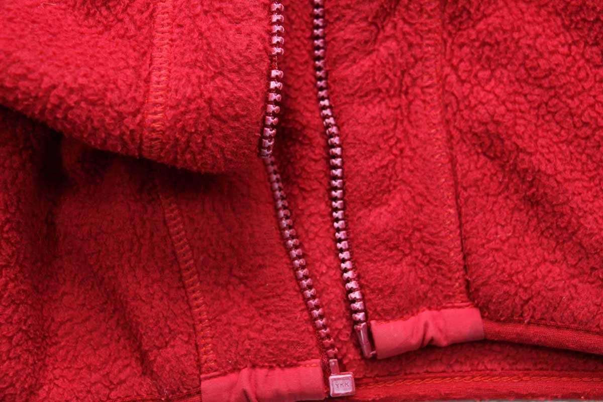 コンディション:着用感があり、ネック左のナイロン地にうっすら汚れ、右袖先に細かいペンキ飛び、ヒジに少しのフリースの寝、ジップレールに歯飛びがありスライダーが欠損しています。