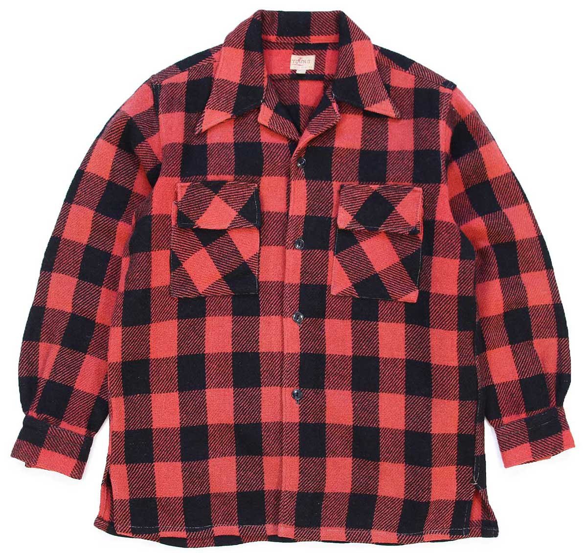 50s YOUNG バッファローチェック オープンカラー ウールシャツ 赤×黒