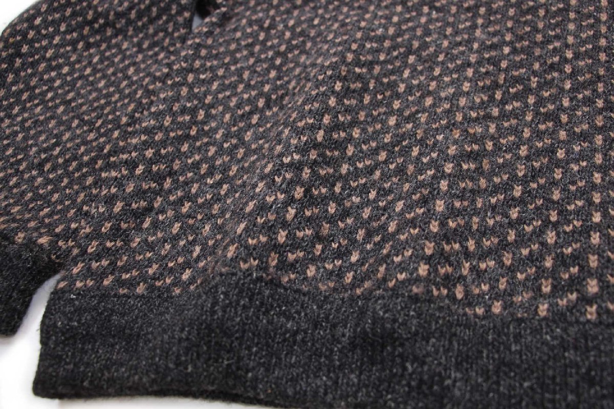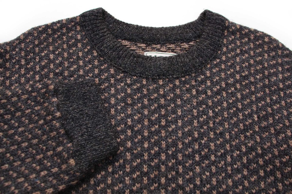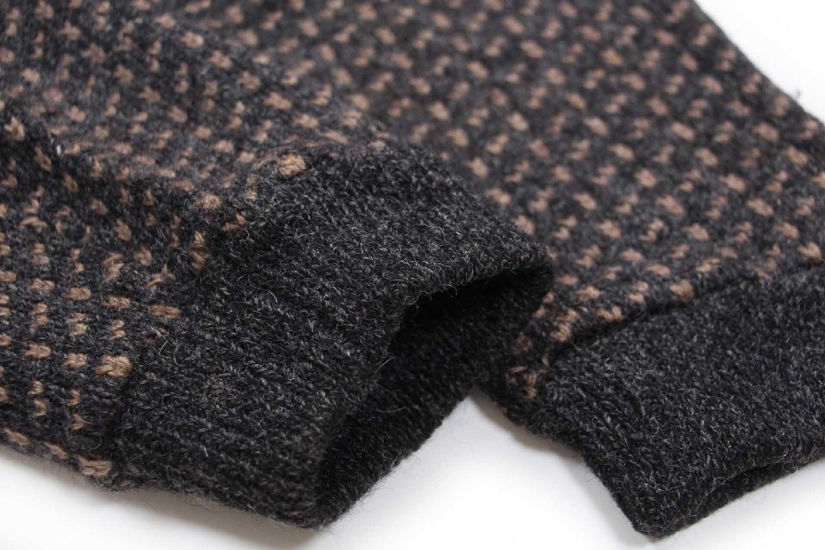 90s ノルウェー製 L.L.Bean ノルウェージャン バーズアイ ウールニット セーター チャコールグレー×グレーブラウン L-M