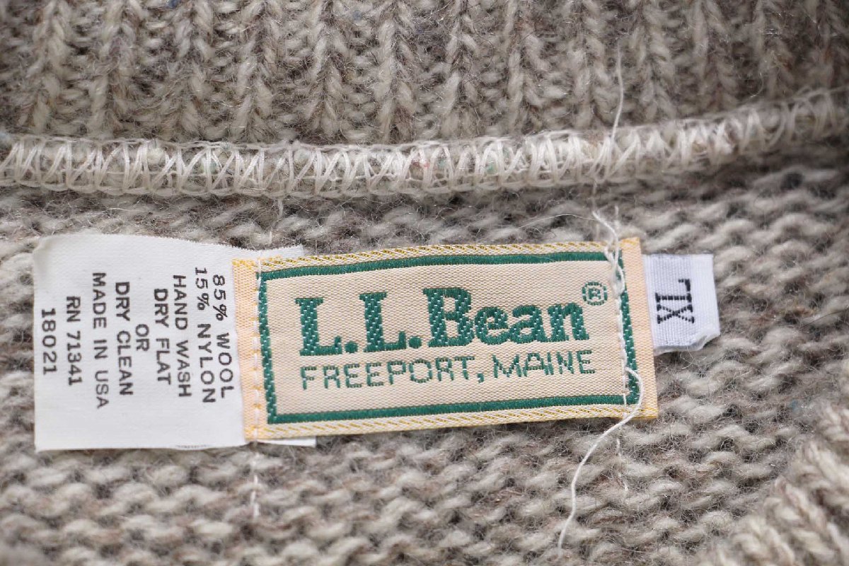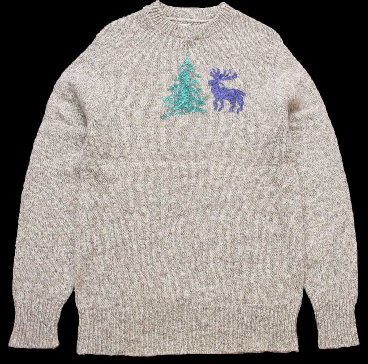 80s USA製 L.L.Bean ツリー ムース ハンドペイント アート ウールニット セーター グレーブラウン×ナチュラル ミックス XL