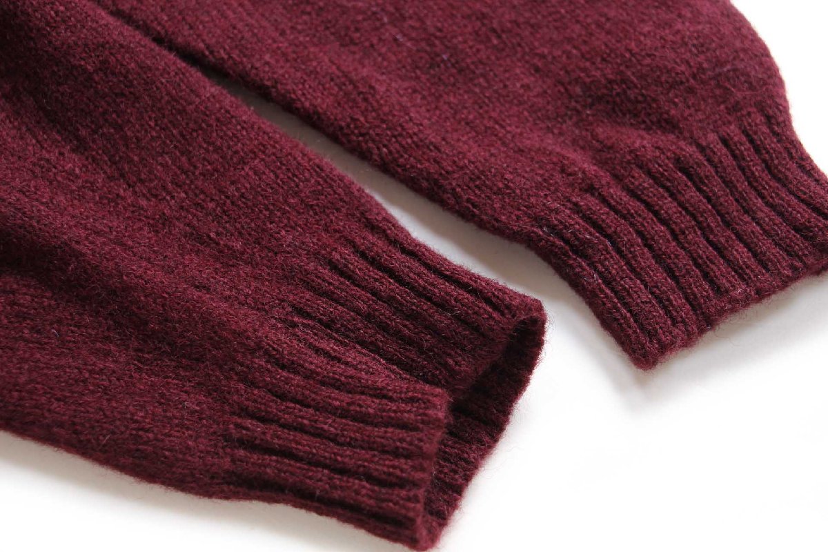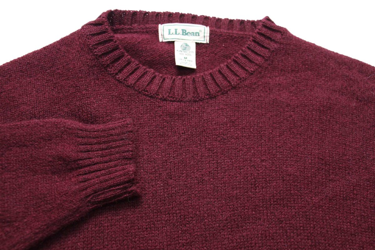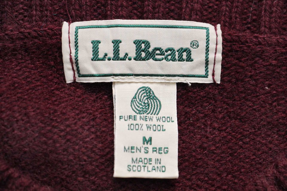 90s スコットランド製 L.L.Bean 無地 ウールニット セーター ワインレッド M-R