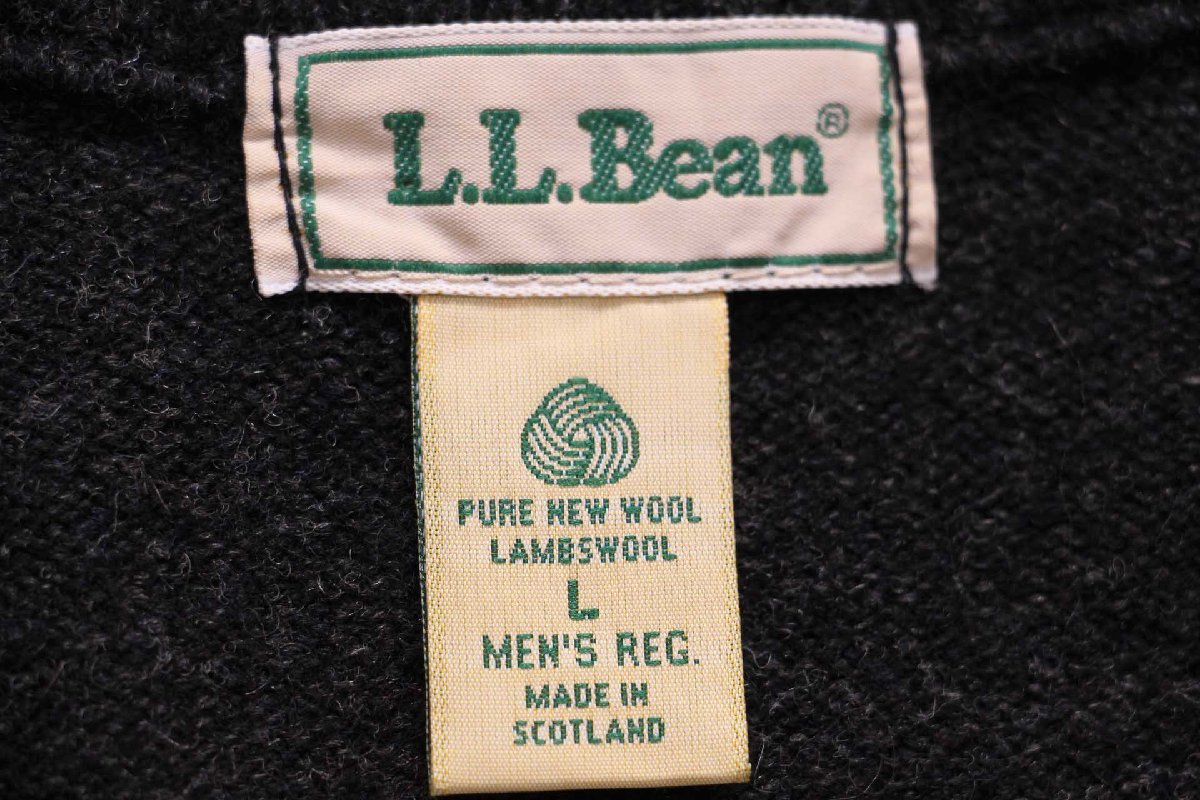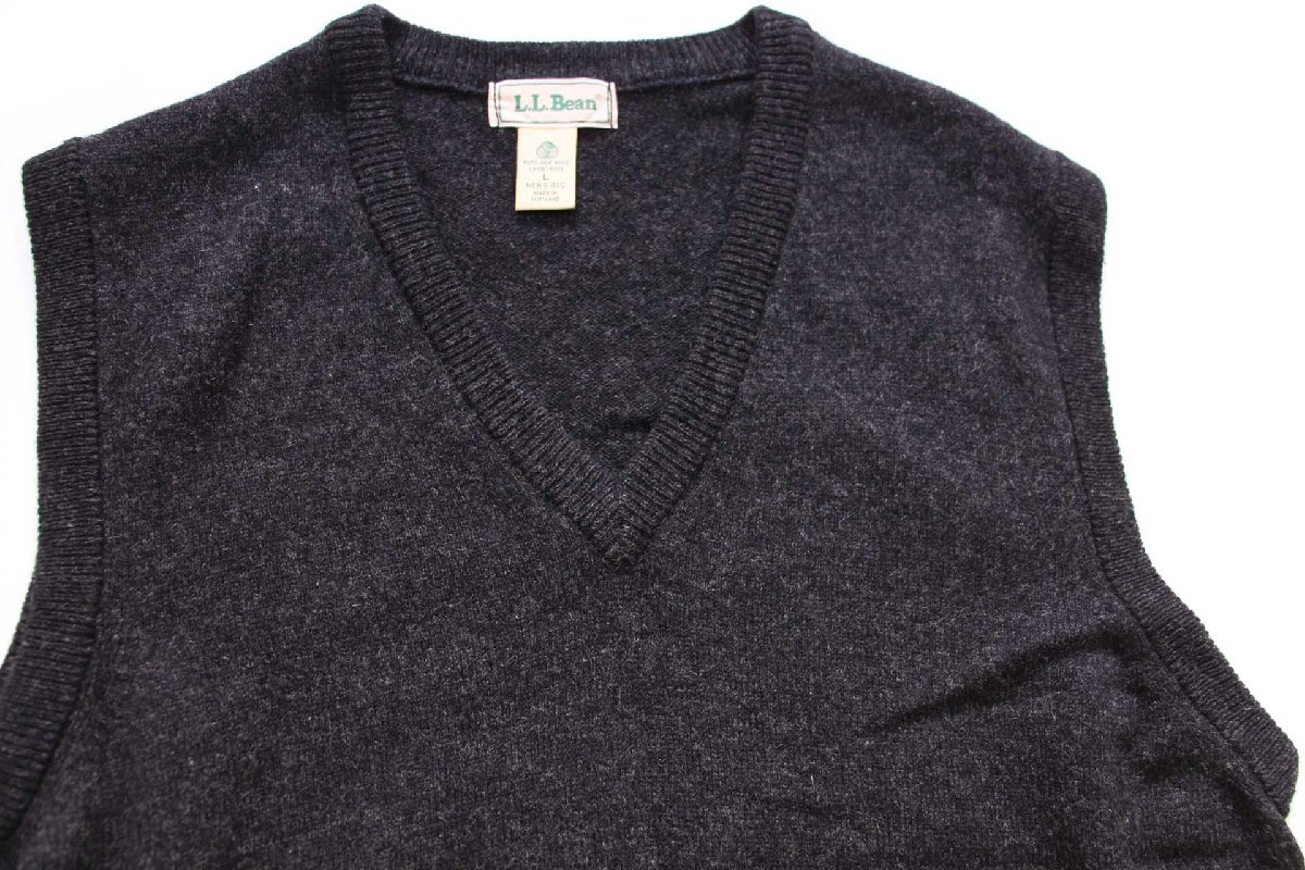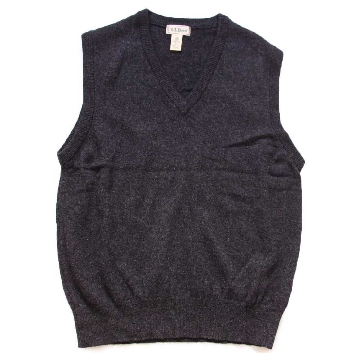 90s スコットランド製 L.L.Bean 無地 Vネック ラムウールニット ベスト セーター チャコールグレー L