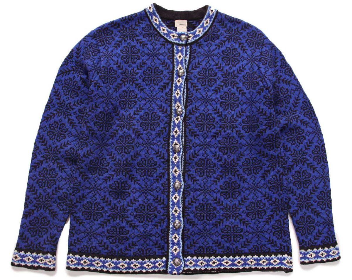 オーストラリア製 L.L.Bean 雪柄 ノルディック柄 チロリアンテープ コットンニット カーディガン W-L
