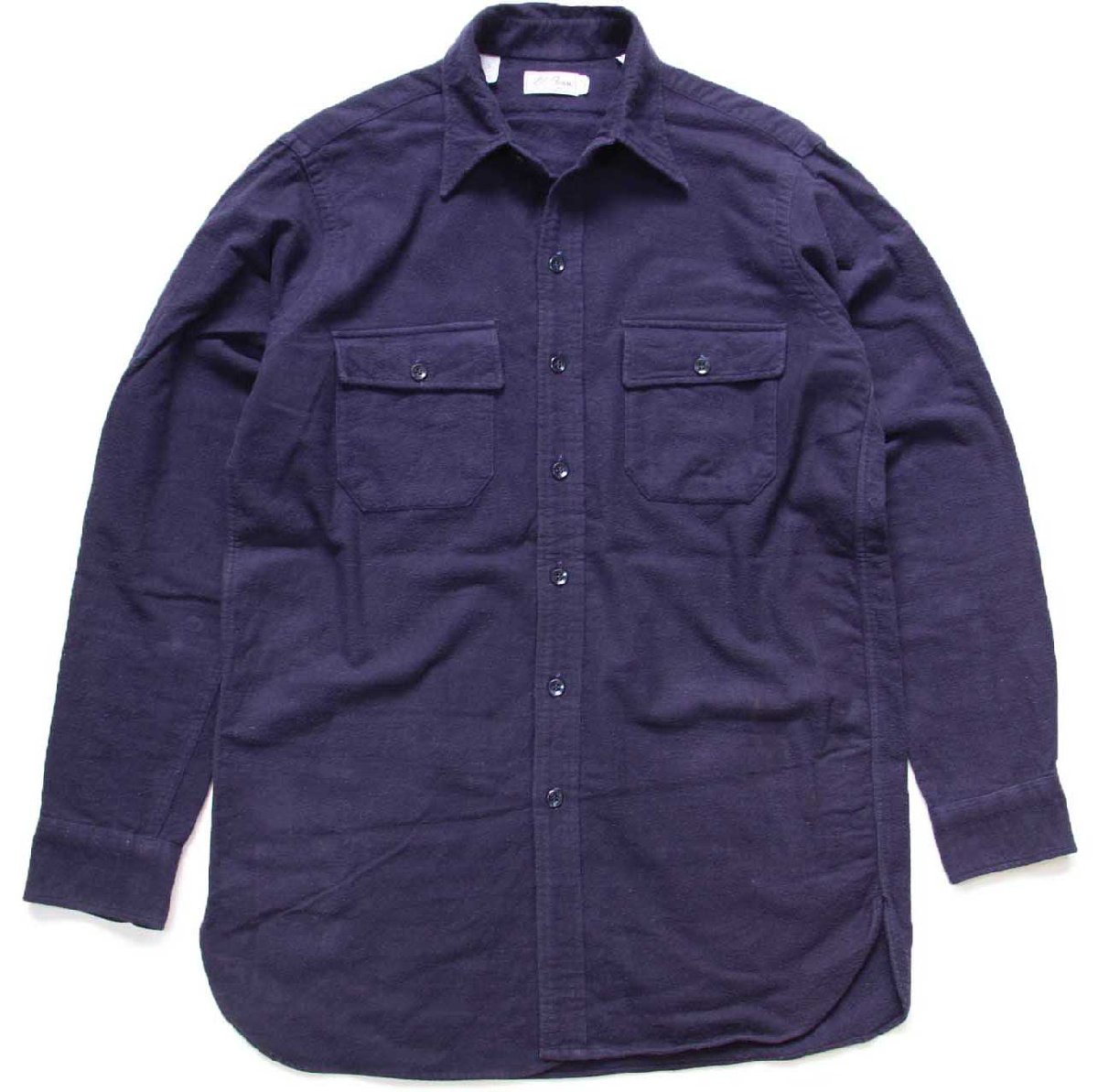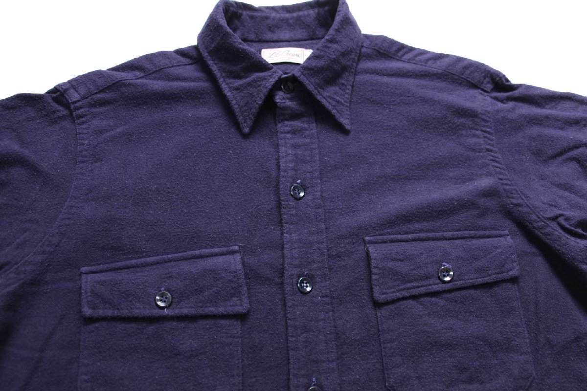 70s L.L.Bean 筆記体タグ 無地 コットン シャモアクロスシャツ 紺 L