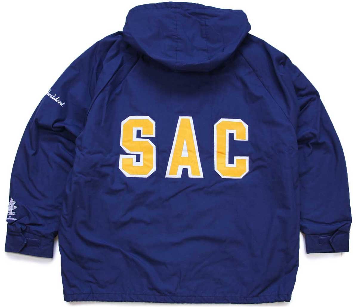 ラグランスリーブ、バックにSACのパッチ付き、左胸や左袖に刺繍あり、フード&裾にドローコードあり、薄手のライナーあり、左内ポケットあり