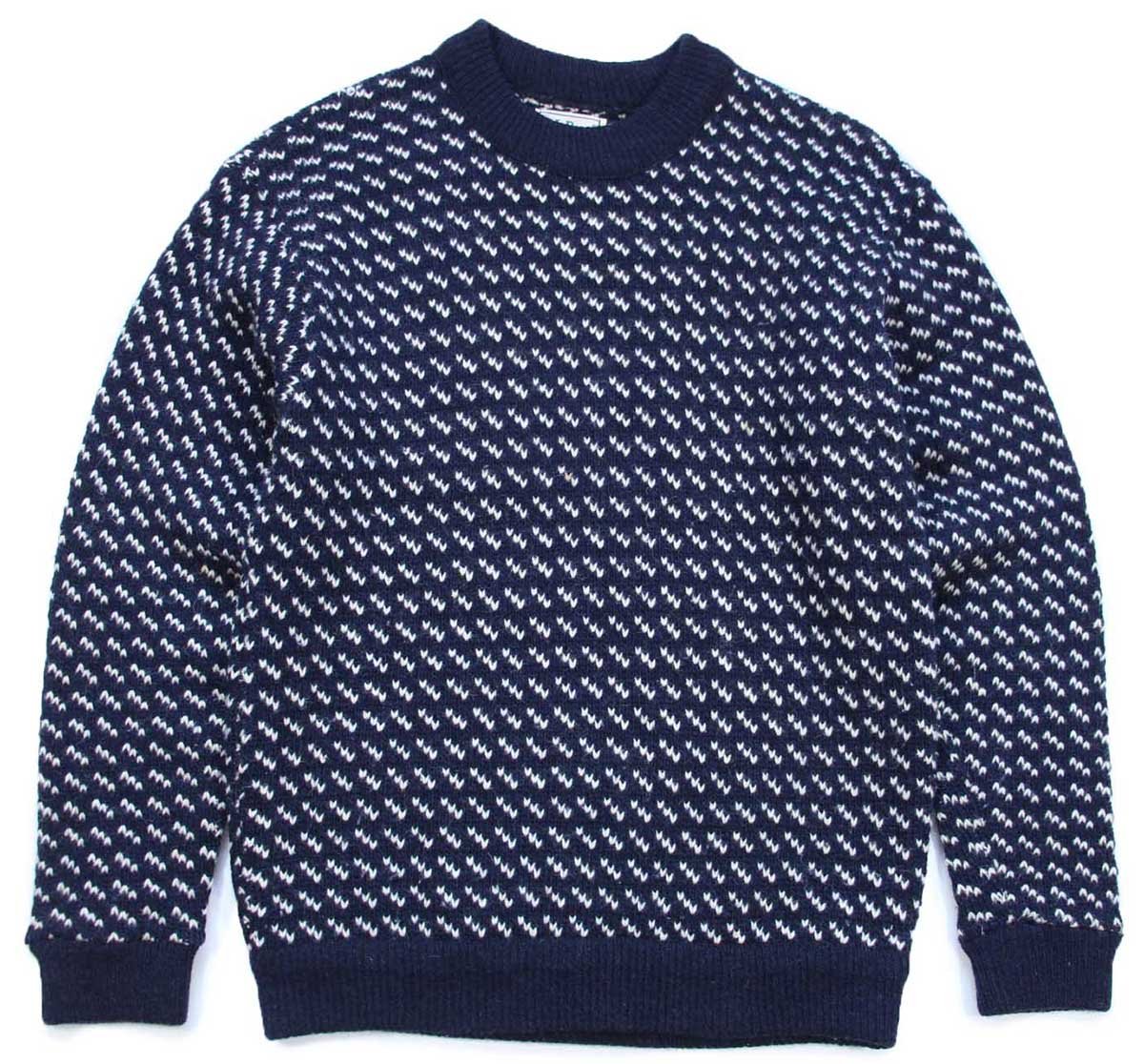 90s L.L.Bean ノルウェージャン バーズアイ ウールニット セーター 紺×白