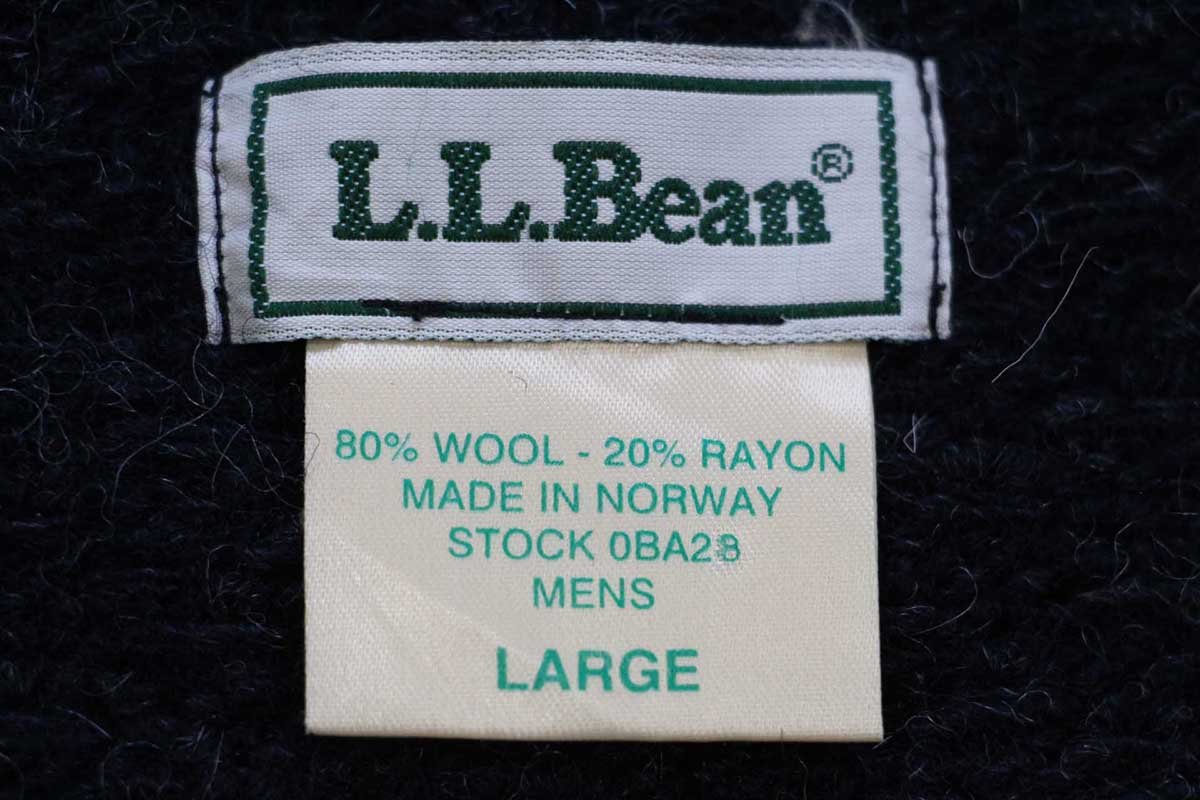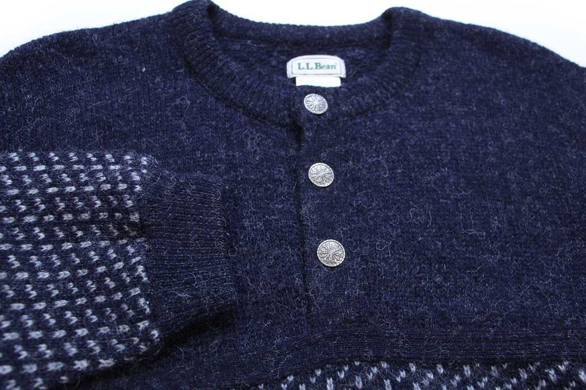 90s ノルウェー製 L.L.Bean ノルウェージャン バーズアイ切り替え ヘンリーネック ウールニット セーター 紺×グレー L