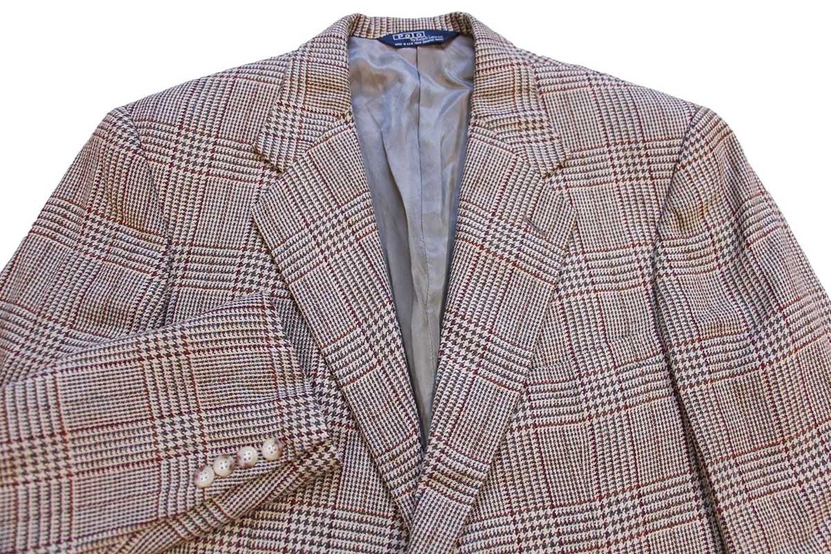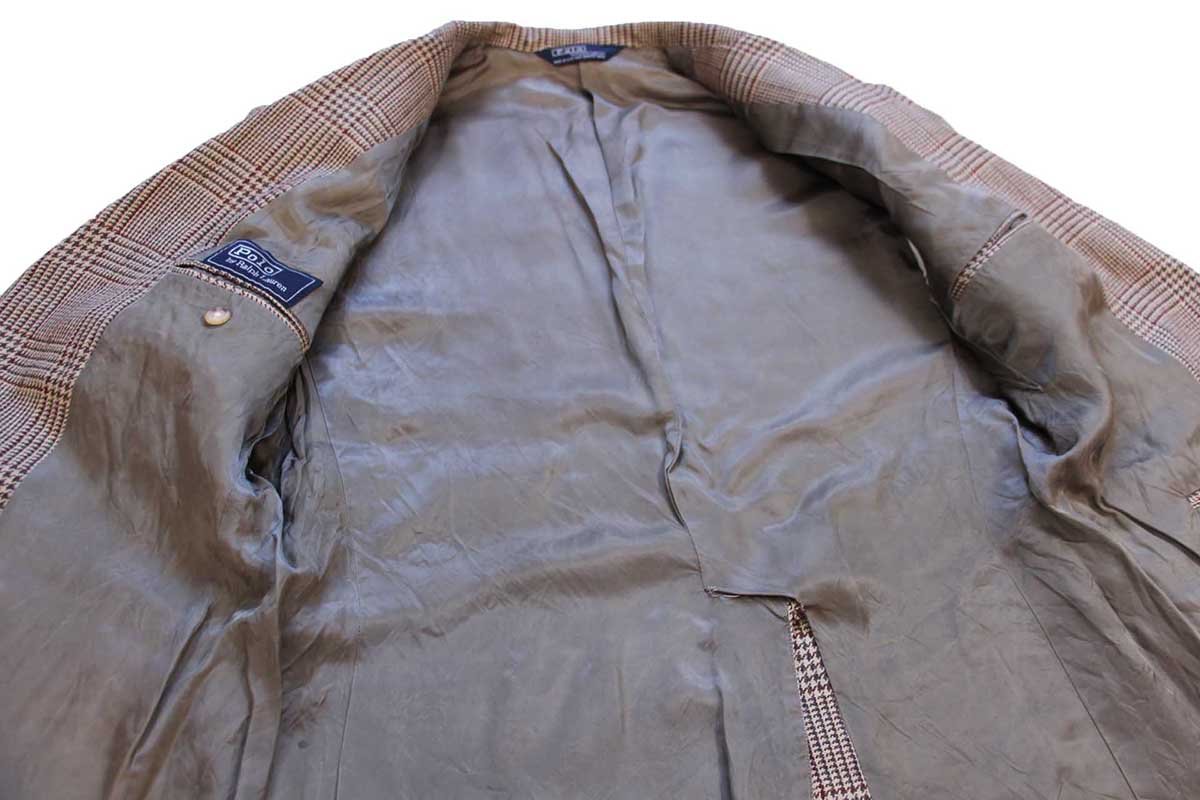 80s USA製 ポロ ラルフローレン グレンチェック 2つボタン ツイード ウール テーラードジャケット 44R★ブレザー