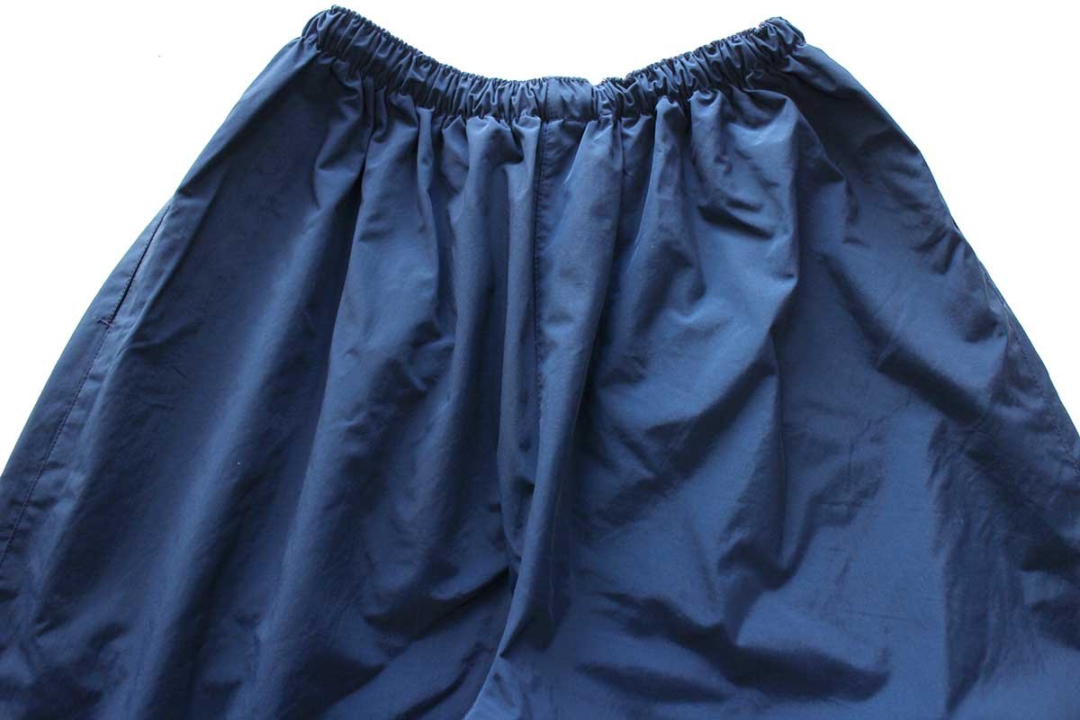 ウエストにゴム&ドローコード(留め具欠損)あり、サイドポケットあり、右ポケット内にネームタグあり、裾にジップあり、ヒザ下にリフレクターあり、裏地はメッシュ
