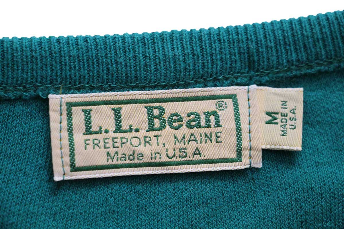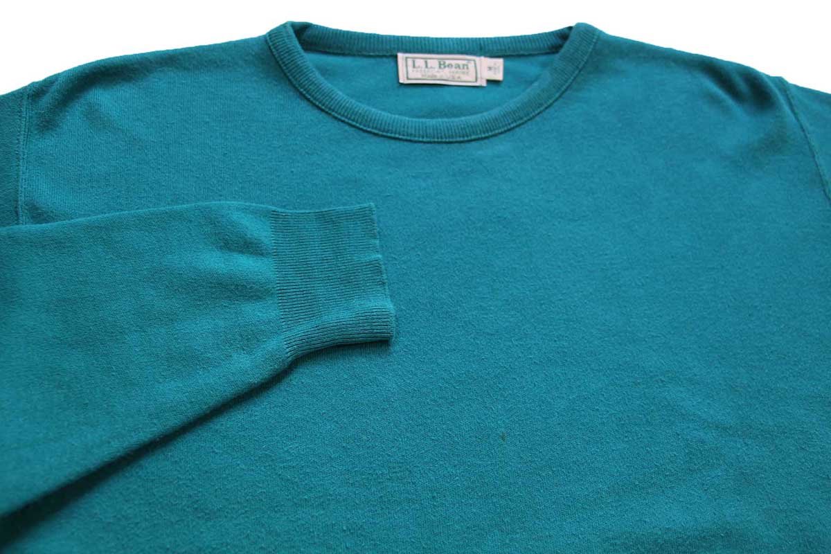 90s USA製 L.L.Bean 無地 コットンニット セーター エメラルドグリーン M