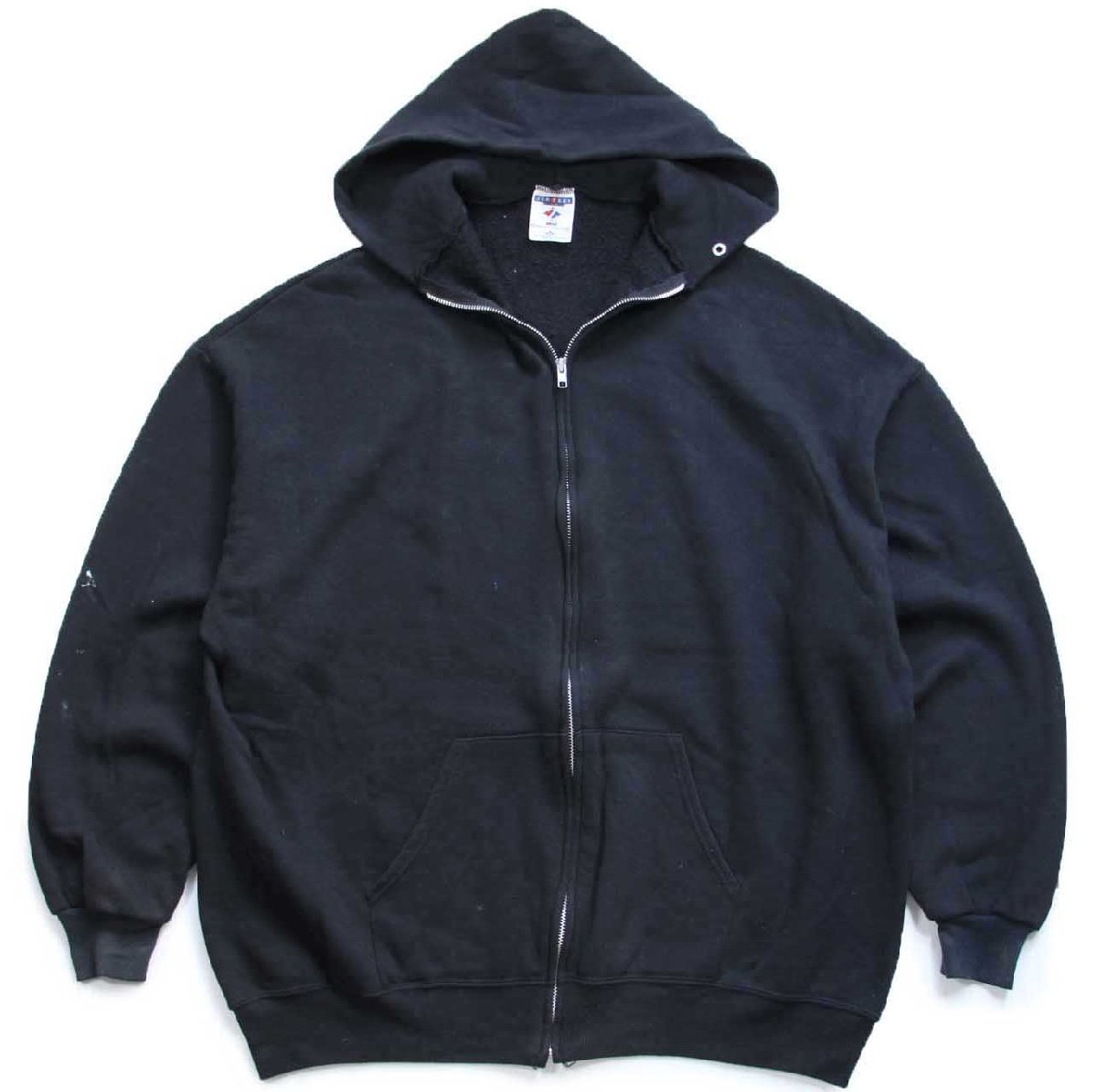 00s USA製 JERZEES 無地 ペンキ飛び スウェット ジップパーカー 黒 3X★特大 フーディー ブランク