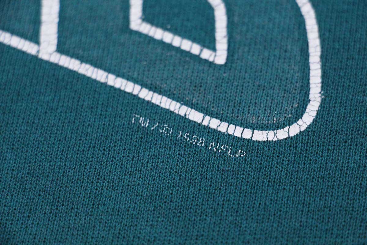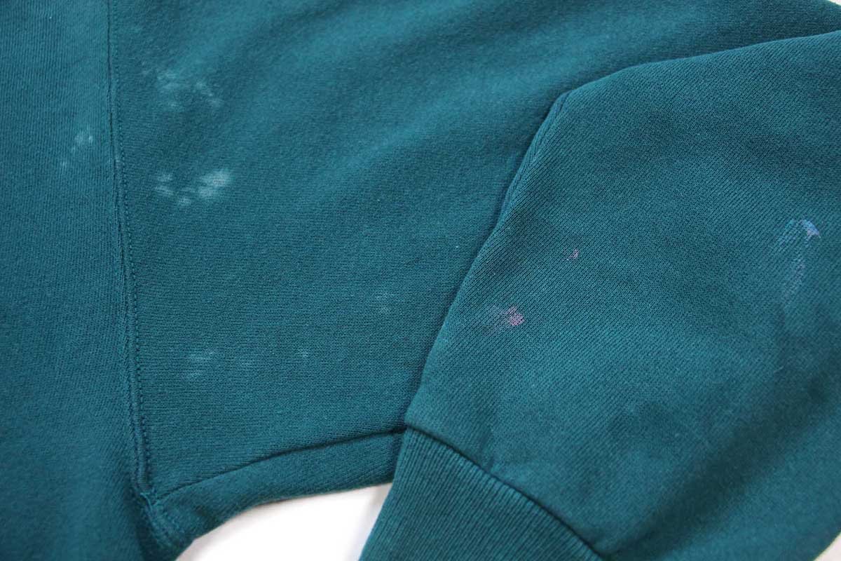 コンディション:着用感があり、所々に細かい色抜けや薄汚れ、左袖先に少しのペンキ汚れ、フロント裾リブと左袖リブに細かい生地の開きがあります。目立つダメージや酷い汚れはなく、古着慣れされている方なら問題なく着用いただける程度です。