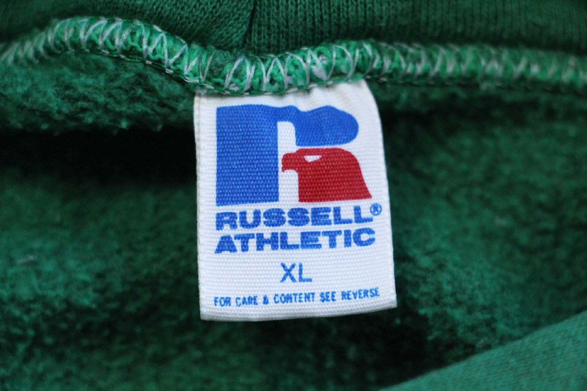 80s USA製 RUSSELLラッセル Fickling & Walker スウェットパーカー 緑 XL★フーディー