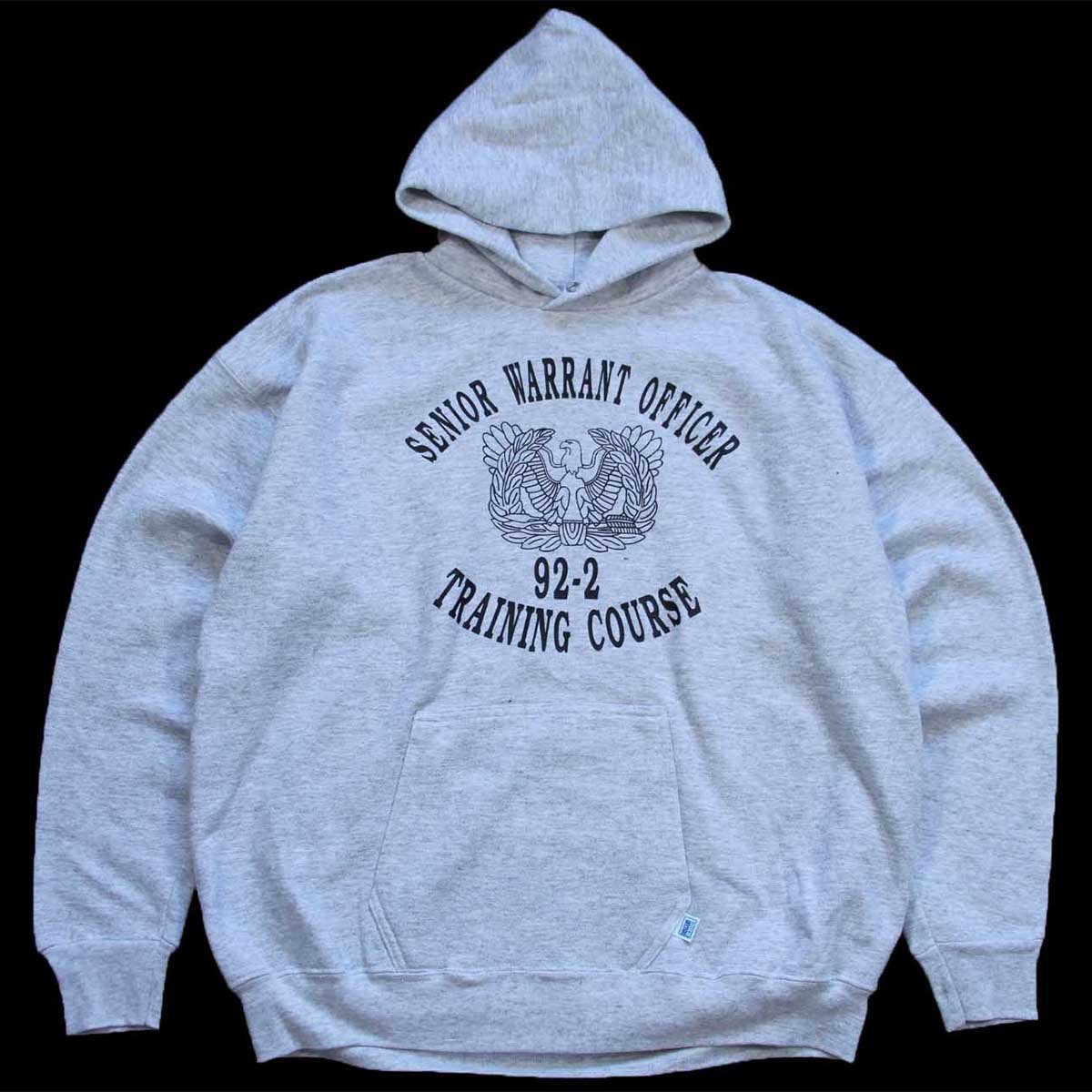 90s USA製 DISCUS SENIOR WARRANT OFFICER TRAINING COURSE スウェットパーカー 杢ライトグレー XL★フーディー