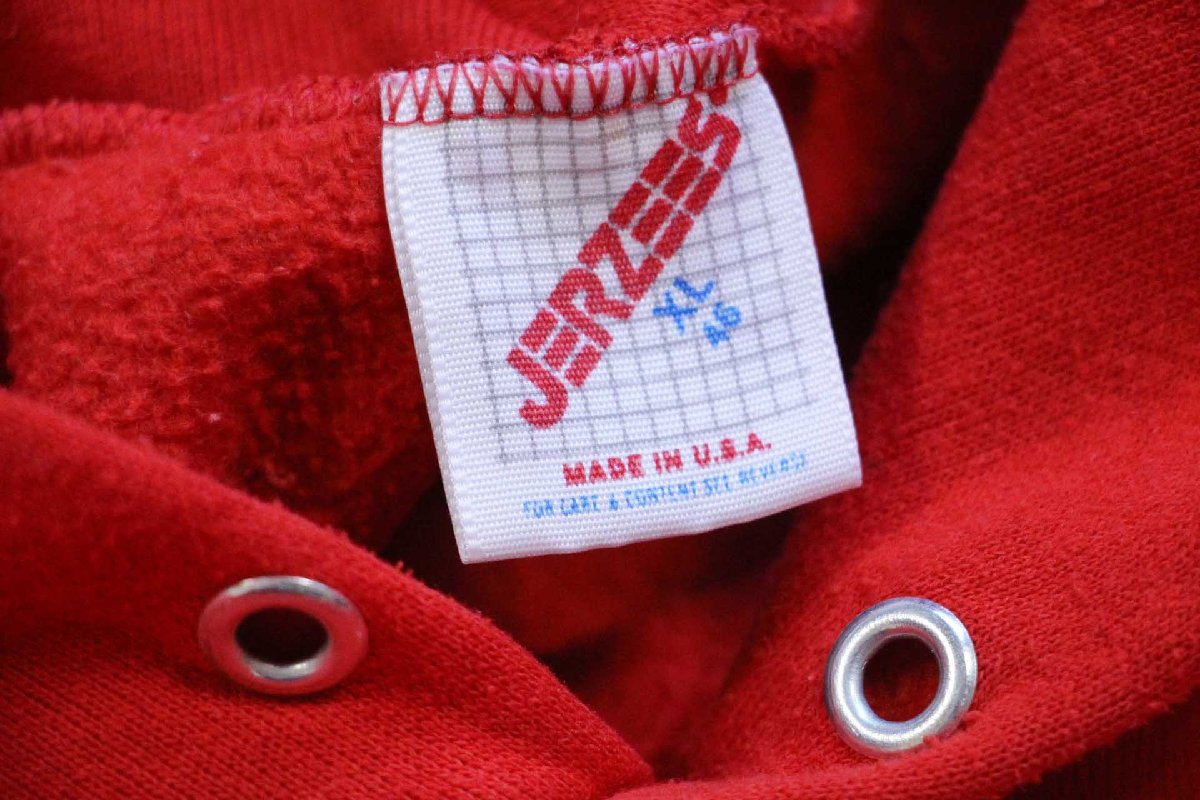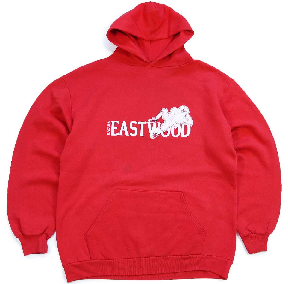 80s USA製 EAGLES EASTWOOD マスコット ひび割れプリント スウェットパーカー 赤 XL★フーディー RUSSELLラッセル