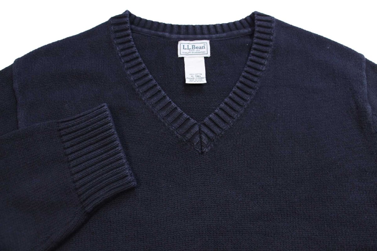 L.L.Bean 無地 Vネック コットンニット セーター 黒 XL-T