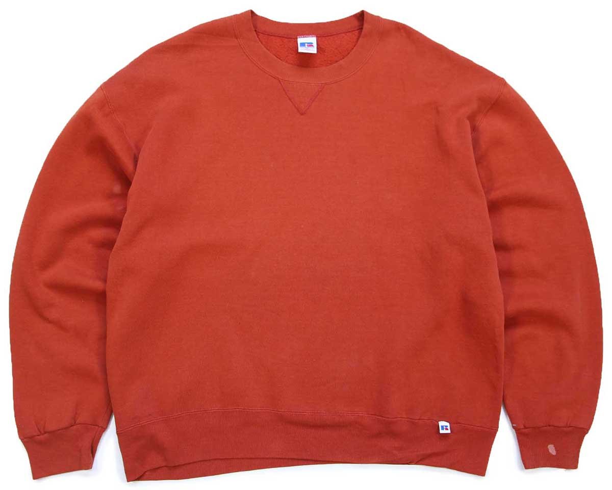 90s メキシコ製 RUSSELLラッセル 無地 ペンキ飛び 前V スウェット レンガ XL★ブランク