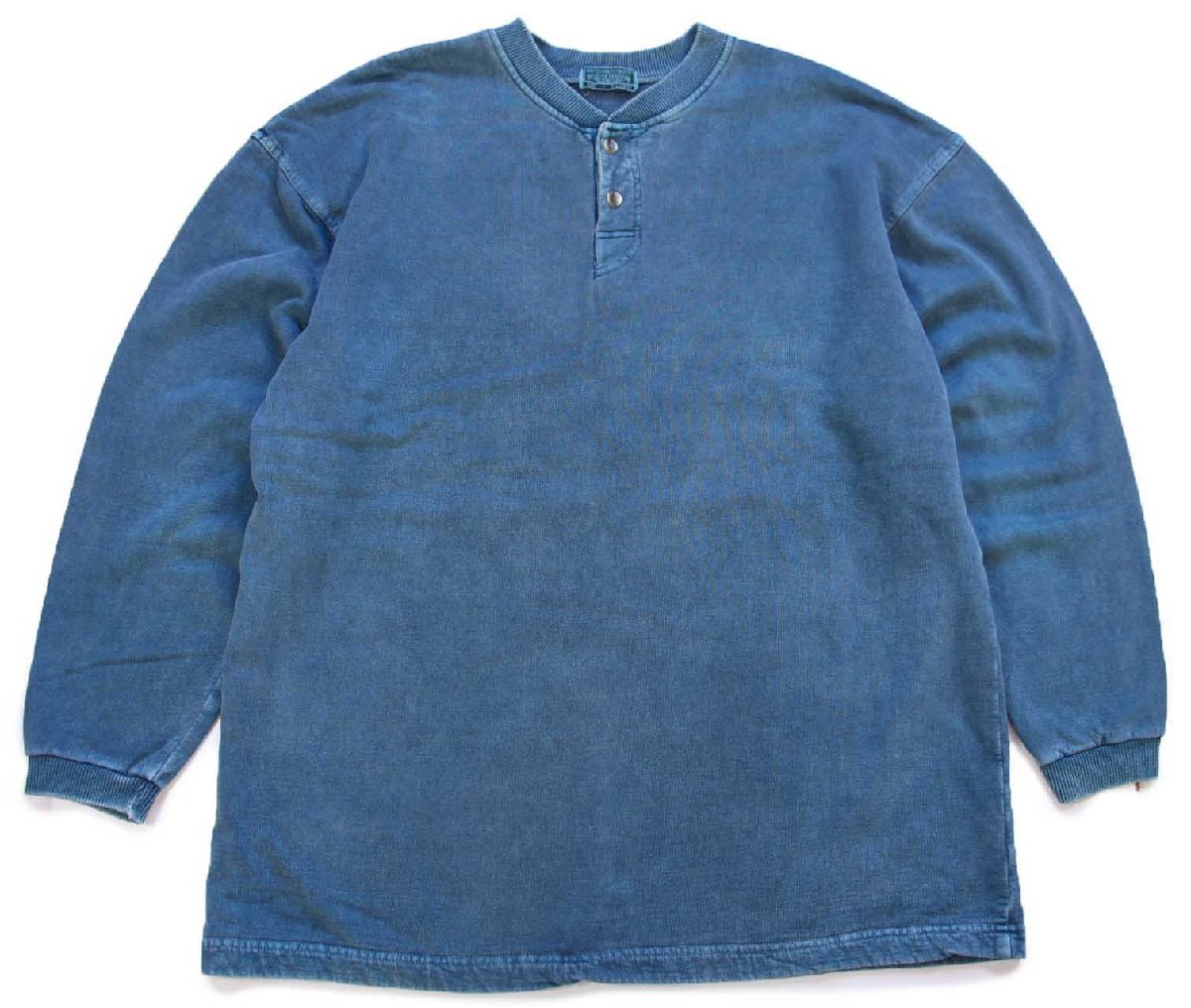 90s USA製 McINTOSH & SEYMOUR 無地 ヘンリーネック コットン スウェット 後染め 青緑 XL★ピグメントダイ
