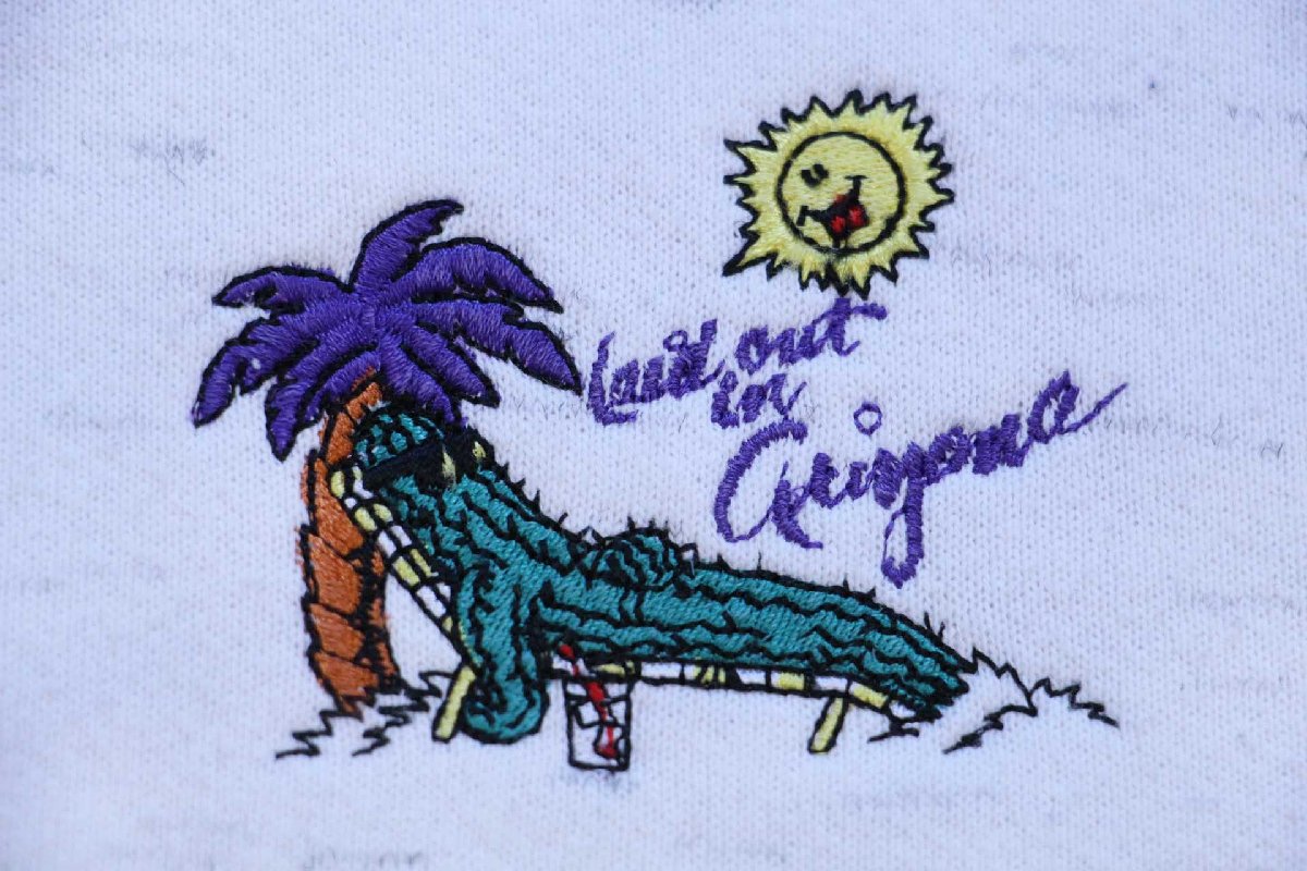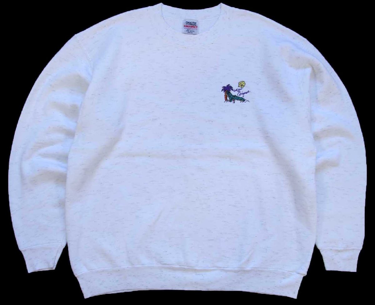 90s USA製 サボテン サン スマイル ヤシの木 刺繍 スウェット 杢ホワイト XXL★特大