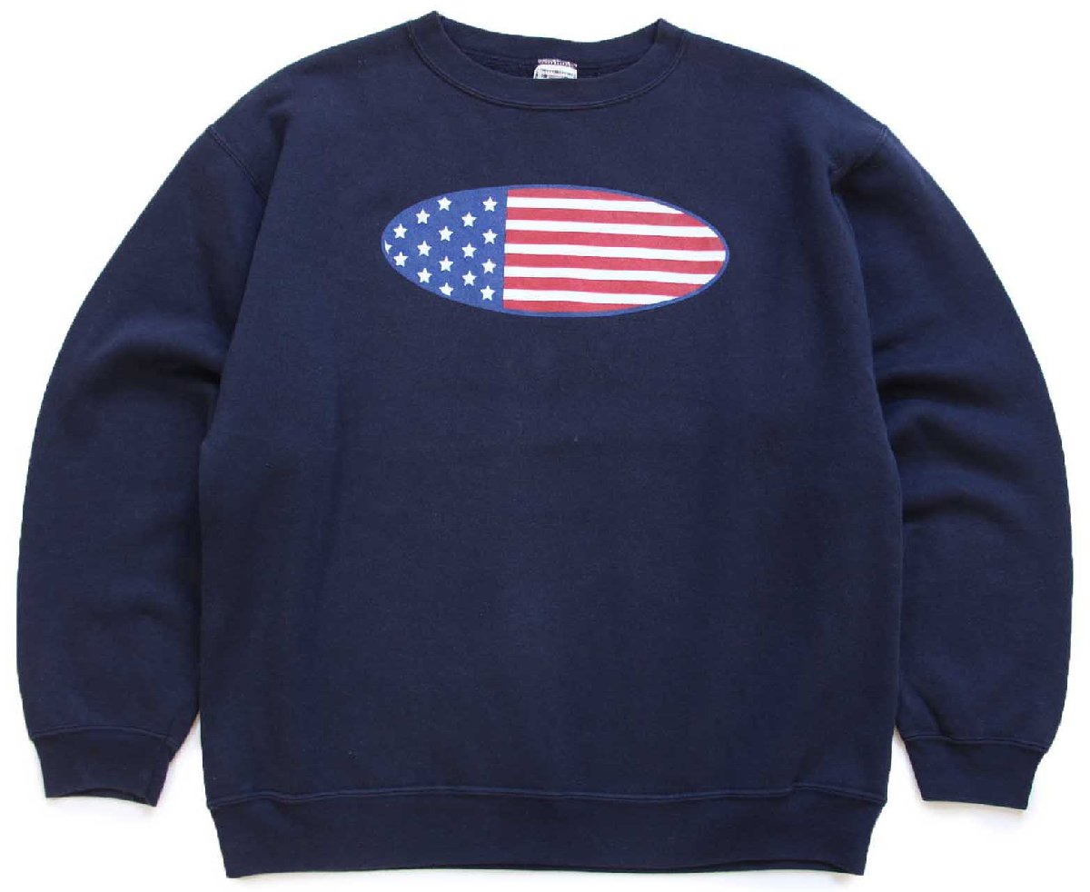 90s USA製 Alore オーバル 星条旗柄 スウェット 濃紺 XL